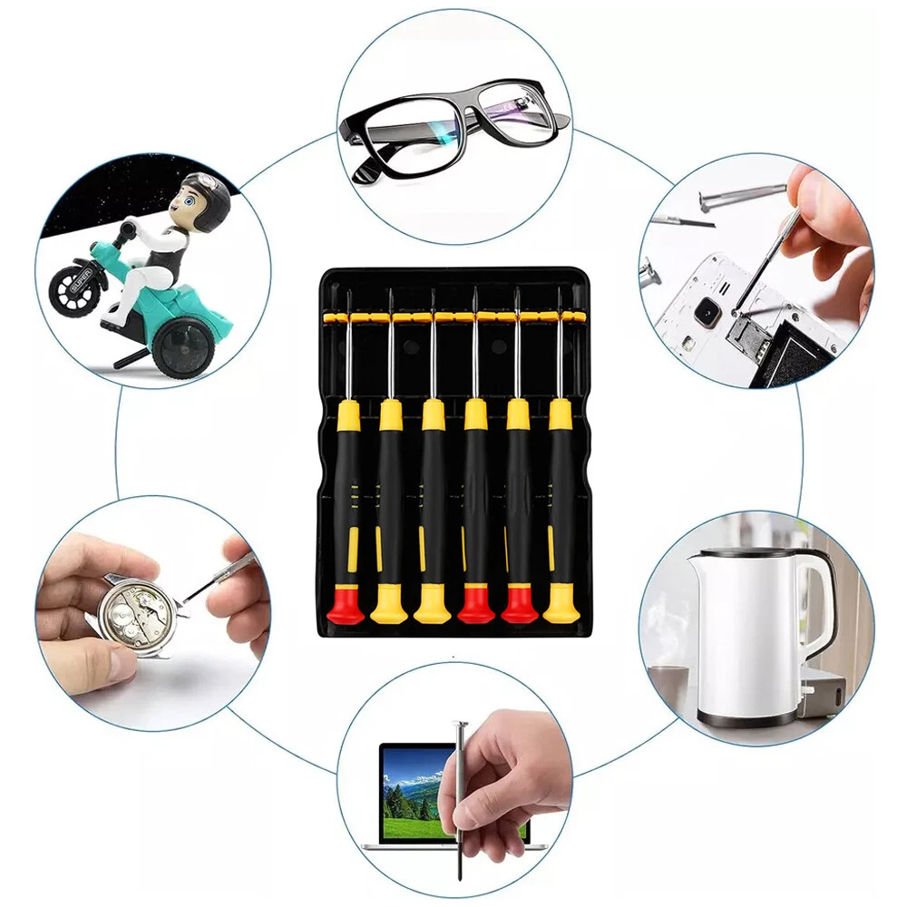 Small Mini Repair Kit Phones Watch Glasses Repair Set Repair Tool with Case 【Perfect For】Daily electronic repairs, smartphones, watch repairs, jewelry repairs, and other small screws. Rotating Design Eyeglass Repair Kit 【End Cover】Features a rotating design, making it flexible and comfortable to use. The tightly combined gap ensures a smooth rotation, improving efficiency and ease of use. High Quality 【Material】Made of high-quality chrome vanadium steel, with a hardened carbon steel shaft and black oxidation treatment. This makes the screwdriver set durable and corrosion-resistant. The small size is perfect for handling tiny screws. Warm Tips: Please keep the Mini Screwdriver Set out of reach of children and pets.