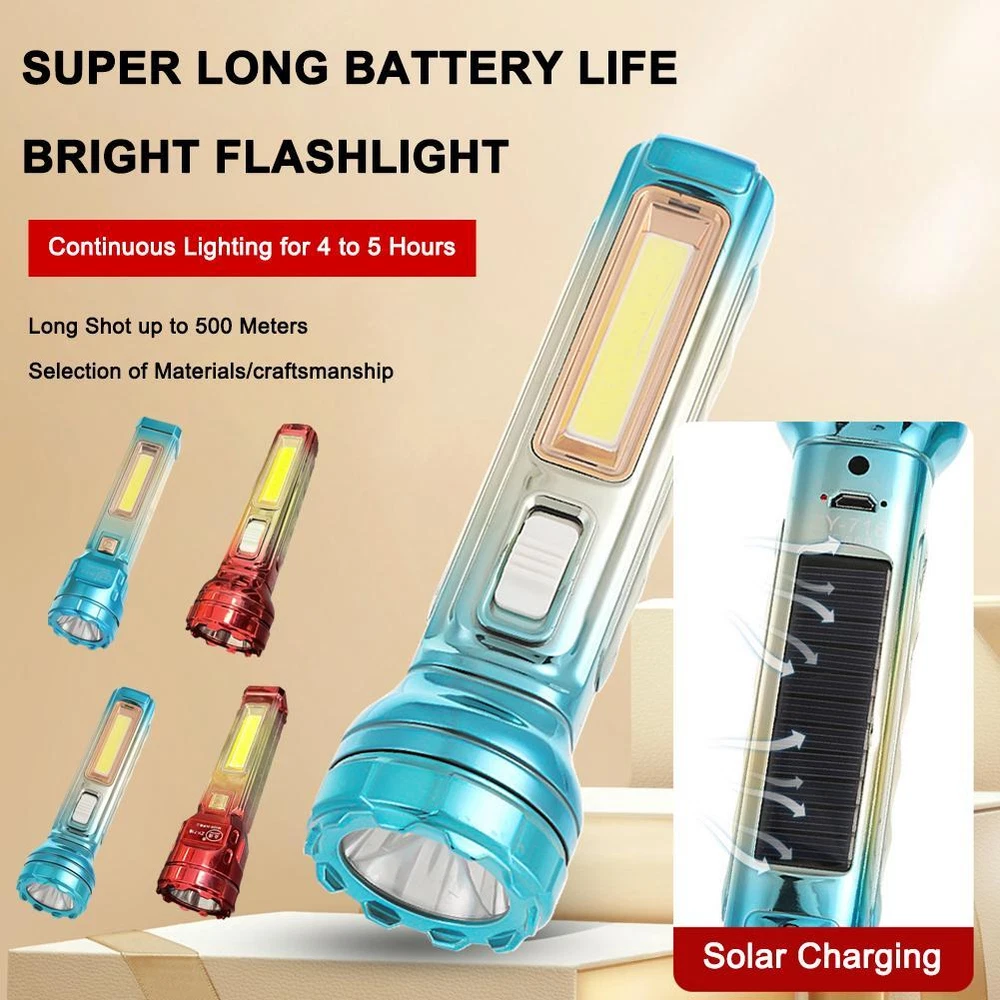 Description Description&Preview shipping&policy Description: Product name: Solar LED COB Flashlight Battery: 1200mAh Working time: 4-5 Product material: ABS Product features: 1. Solar-powered flashlight with strong light output and COB side light. 2. Ideal for outdoor activities such as camping and night fishing. 3. Portable and multifunctional LED tool. 4. USB rechargeable for convenient power source. 5. Versatile and essential for various needs during outdoor adventures. Precautions: 1. As we all know , the different computers display colors differently, the color of the actual item may vary slightly from the following images. 2. If you feel difficult to choose the size, you can feel free to contact me we will give you some suggestion, but it is for you reference only. Package includes: 1 pc Flashlight with Charging cable Preview: Thank you for your purchase Problems? You can follow below process to contact us. There is a time zone difference,but we will do our best to quickly response to your questions: Shipping ● We will arrange shipping for you within 24 Hours after payment cleared except the holidays. ● We always send the item to the address you give us on Payoneer to ensure the security of the item. If you have changed your address, or want us to ship to another address, please change to the new address when you pay us with Payoneer, otherwise we will not be responsible if the package is lost. Payments We accepts Payoneer only If you have any questions about the payment,please contact us through eBay message. Import Duties In case some duty is due Upon delivery, it is your responsibility to meet that expense and this may cause delays to delivery schedule and you may have to pickup goods at the customs office. Terms & Conditions By bidding on this item,the Buyer agrees to all of the terms and conditions as outlined in this listing .please ensure to read and agree to All eBay terms and Conditions before bidding. All pictures are for illustration purpose only and Colours may vary slightly. Our store obeys all eBay Rules and Policies. Returns Policy To Return an item you must contact us and take photos of your item to clearly show any damage or unusual aspects of it. Approved returns will be subject to inspection on arrival. Items must be returned in original condition with all original packaging. All shipping and handing charges are non-refundable Return delivery costs are the responsibility of the buyer. We will cover the cost if sending replacement/repaired items. Within 7 days after receiving your products, we offers a no-hassle 7 day exchange/replace only if your items are found to be defective by manufacturer.