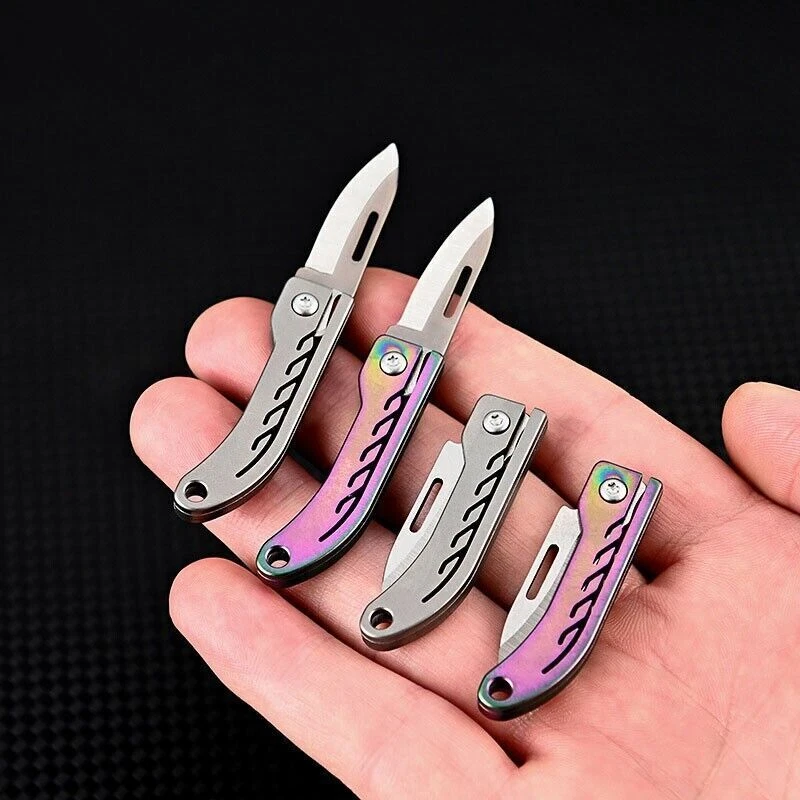 Description Mini Titanium Alloy D2 Keychain Folding Knife Pocket EDC Outdoor Camping Travel Survival Tool Details: You can use this tool at will to open envelopes/package. D2 steel blade surface is polished to make it sharper and tougher The handle is made of titanium alloy, adding a sense of comfort when holding it The simple design reflects the simplicity with a feeling of individuality The portable size and the folding blade make it easy to carry along The key chain to make it easier to carry along Handle Material: TC4 Titanium Alloy Blade Material: D2 Color: Gray, Colorful Open Length: 72mm Close Length: 43mm Blade Length: 27mm Blade Width: 8mm Net Weight: 7g Package: 1pcs Mini Titanium Folding Knife. On May 27, 2023 at 05:53:15 PDT, seller added the following information: