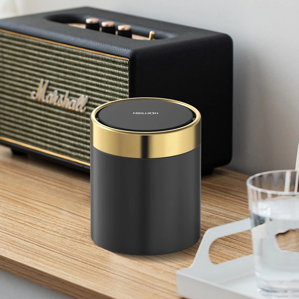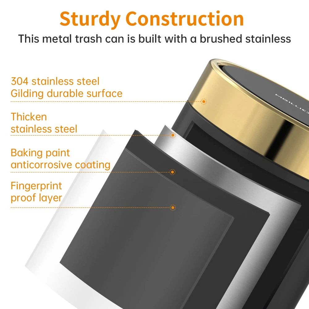 More than a Bin - Trash Can Provide Multi-Color Stainless Steel Designed to Decorate your Home,to Enhance your Existing Decor and Offer a Convenient Way to and Contain Trash; Use for Trash, Recycling or Storing Household Items Elegance Design - Center-weighted swing lid opens easily and then gently swings back into place,elegance looks pairs well with any décoration Sturdy Construction - This metal trash can is made of thicken 430 stainless steel and built with three layers brushed finish outside, makes it strong and elegant Baking Paint Coating - Baking paint layer made with 5 different colors as brushed stainless,Anti fingerprint layer keeps it cleaner looking Small Trash Can : 1.5 Liter capacity makes this trash can the perfect size for rooms with limited space.Trash bin measures 4.7 x 4.7 x 5.9 inches overall.Perfect for office near or under desk, bathroom wastebasket, and apartment kitchens