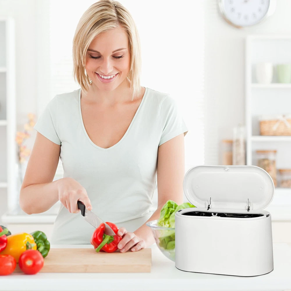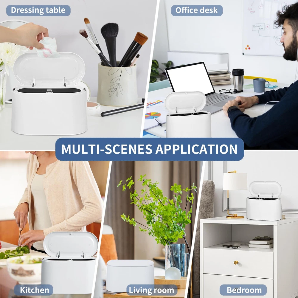❤【Desktop Trash Can with Lid】 The new mini trash bin with lid can effectively reduce the spread of odors and isolate fruit flies. Beautiful hidden trash bag and fresh color design, it can even become the perfect decoration for your desktop! ❤【Easy to Use & Clean】The pop-up design lid is simple and convenient. Simply tap the button to open or closed the lid. The liner design can place and hide the garbage bag, which is easy to replace the garbage. ❤【Premium Quality Materials】Strong and durable polypropylene materials and high-quality alloy spring, rounded edges without any sharp parts, long-term use is not easy to deform. ❤【Multipurpose】 Suitable for desks, coffee tables, dressing tables, bedside tables, etc. It can also cosmetics and toiletries to keep your tabletop neat. ❤【RISK-FREE SHOPPING】 The Nordic minimalist style design is neat and beautiful. us via if the product is defective when received or there is any problem when using it, we will help you resolve the issue as soon as possible.