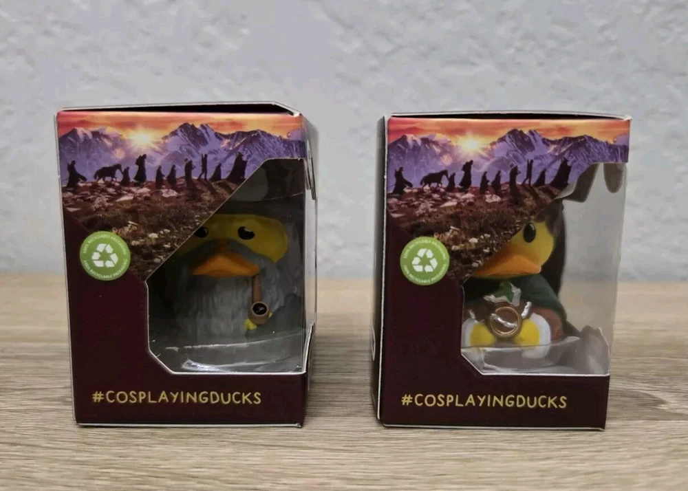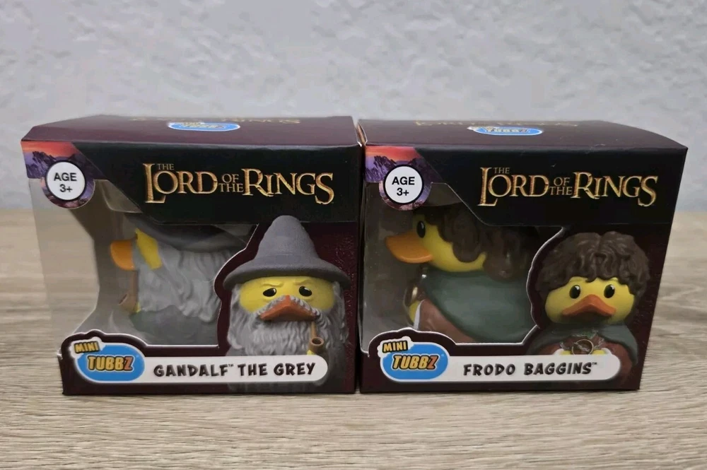 *Free shipping with USPS Ground Advantage. Ships ASAP. Packaged with care. Smoke-free home.* Get your hands on this amazing Mini Tubbz LORD OF THE RINGS Gandalf The Grey & Frodo Baggins Vinyl Duck 2" Figures set. This set includes two collectible figures of your favorite characters from the movie franchise - Frodo Baggins and Gandalf. The figures are made of high-quality vinyl material and come in a boxed package, making it a perfect gift for any LOTR fan. Not only are these figures perfect for display, but they also have a unique feature - they can ride in your Jeep! The set is designed for children aged 3+. The figures are multicolored and have a cosplaying duck model, making them a perfect addition to your action figure collection. The set is manufactured in China and is part of the Mini Tubbz series. Get this amazing set now and add it to your collection!