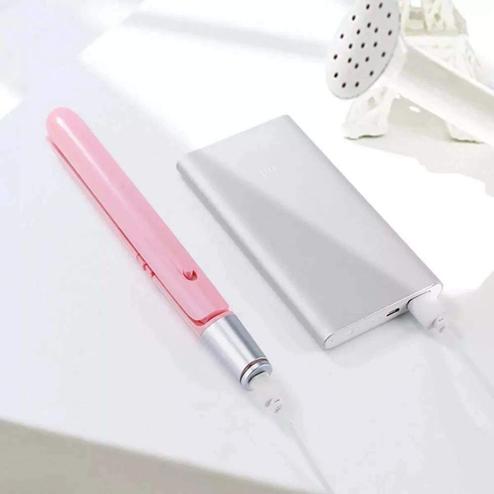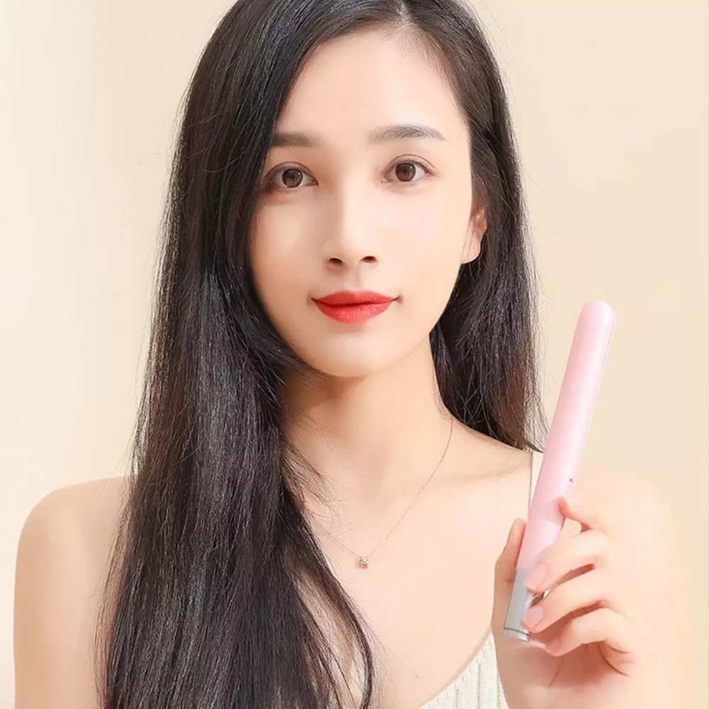 its usb operated so its corded Mini USB Portable Corded Hair Straightener Curler Professional Split Styling Tool This mini curling iron is a hair straightener flat iron that can make your hair smooth and frizz-free. It has a heat-resistant glove to prevent you from being scalded. It can be powered by laptops, power banks, and so on. Specifications: Name: USB Flat Hair Straightening Curling Iron Materials: ABS Size: about about 19*2cm/7.48*0.79 inches Packing List: 1pc* Mini Dual Purpose Curling Iron