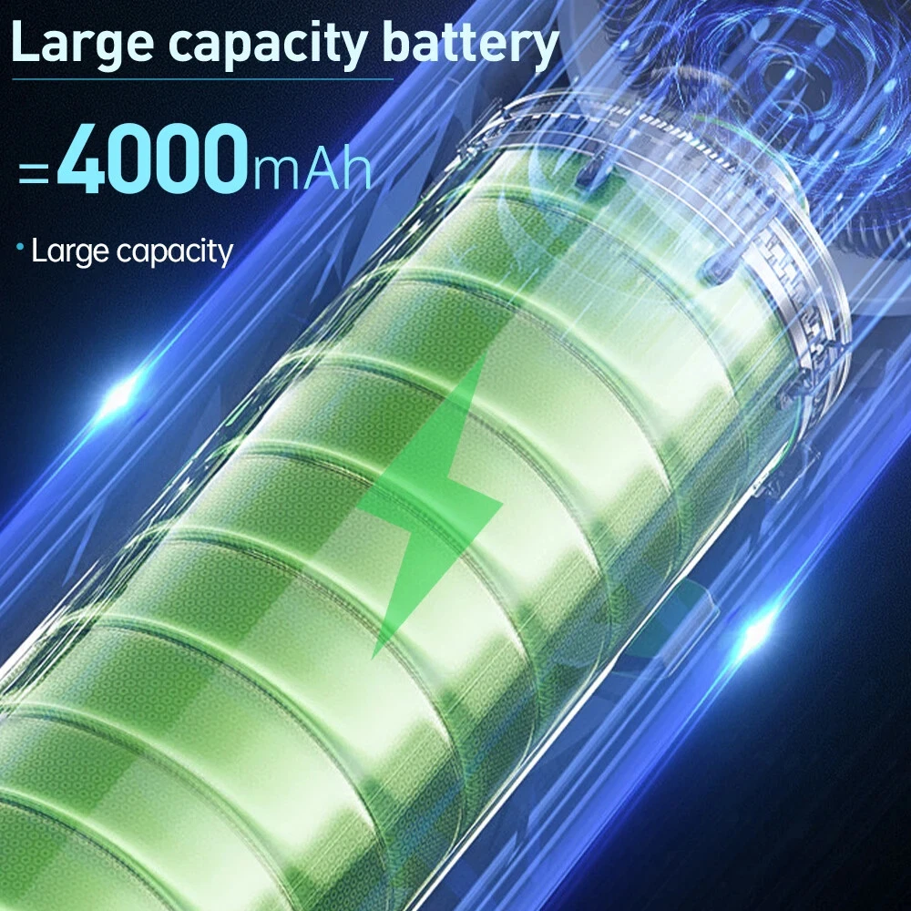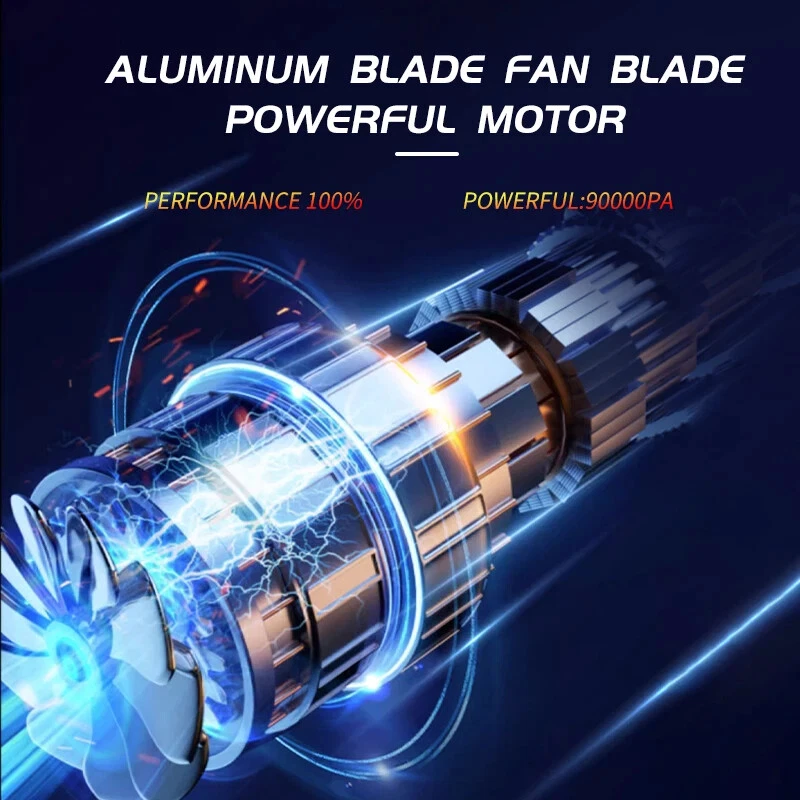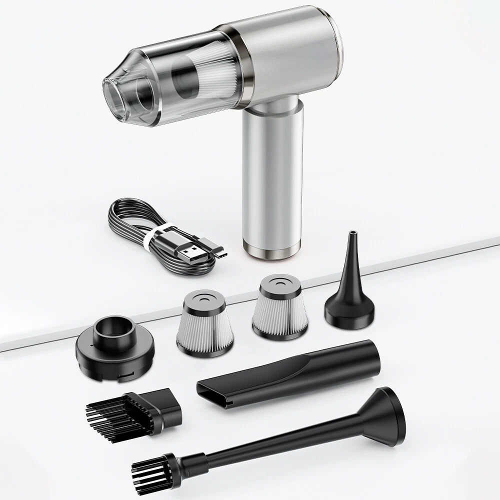 Introduction [Product Name]: Handheld Vehicle Vacuum Cleaner [Product functions]:mainly cleaning cars, vacuuming, blowing dust, blowing balloons and so on Version introduction [Product material]: ABS [Color]: Blue /Sliver [Motor]: New upgrated Ordinary motor [Vacuum degree]: 90000PA [Rated speed]: 21500rpm [Capacity of lithium battery]: 2 * 2000mAh [Charging mode]: Type-C charging line [Noise]: ≤ 52dB [Operating temperature]: - 20 ℃~+50 ℃ [Package list]: vacuum cleaner X1 Accessories X 6 Charging line X1 User manualX1 [weight]:560g