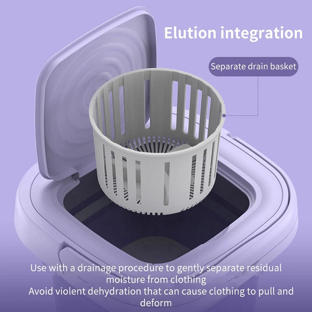 Featrure: Description • Compact and Portable :This mini washing machine is small enough to fit in your suitcase, making it perfect for students living in dormitories or those who frequently travel. • Energy Efficient :The folding design of this washing machine allows for efficient use of space and energy, making it an eco-friendly choice for those who want to reduce their carbon footprint. • Versatile :This machine can be used for washing a variety of items, including underwear, socks, and other small clothing items, making it a versatile addition to any household. • Easy to Use :With its simple design and easy-to-use controls, this washing machine is perfect for anyone who wants to quickly and easily clean their clothes without any hassle. Package: 1x washing machine 1x power plug 1x drain basket 1x drain pipe 1x English user manual Functional Upgrade Can Better Serve Us Deep cleaning One click dehydration Folding storage Fresh and odorless Easy to operate Simply press, convenient, and versatile to serve you Humanoid hand scrubbing Positive and negative bidirectional kneading Paired with high-frequency washing to effectively remove stains Product Properties Product weight: 3.53b Internal depth: 6.7in Working mode: wave wheel type Washing capacity: 6.5 liters Product material: TPE+PP material Rated voltage: DC 110-260V Rated power: 36W Fold Down Lightweight, easy to move, and easy to store in small spaces It is very suitable for camping, vacation, business travel, apartments, dormitories, and won't take up too much space Easy Folding Storage does not occupy space On a business trip, I easily put away my luggage and clean it all the way, accompanying me Low Level Drainage Outlet No residue of sewage After washing or dehydration, all sewage will be discharged along with the drainage outlet