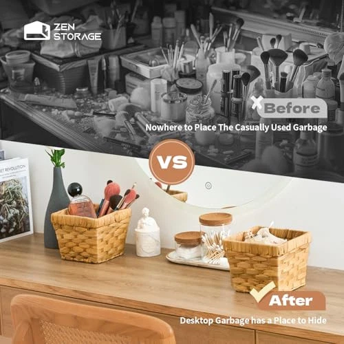 Return Policy Fast Delivery Trusted seller Mini Wicker Trash Can, Countertop Garbage Basket with Trash Bag, 0.5Gal/1.5L Small Desktop Waste Bin Compatible for Camping/Vanity/Countertops/Office, 5.7”x5.7”x4.7'' Natural Color Product Description [Pure natural material] - The mini desktop trash can is woven from pure natural water hyacinth grass material, which is durable and does not contain any chemical additives, ensuring your safe use. [Widely applicable] - The countertop garbage basket is ideally suited for placement on bathroom counters, dressing tables, kitchen countertops, laundry rooms, in cars, dormitories, and even during outdoor activities like camping and barbecues. Additionally, it serves as a convenient storage solution for small desktop waste such as paper scraps, cosmetics, coffee grounds, fruit peels, breadcrumbs, clothing lint, and a myriad of other miscellaneous trash items. [Mini size] - The Small Desktop Waste bin is designed specifically for small spaces, with a mini and lightweight design that does not take up space, making it easy to move and carry out.5.7’’Lx5.7’’Wx4.7’’H,0.55 gal, 0.57lbs. [Hand woven] - The mini desktop trash can is made entirely by hand weaving,wooden wind design,combining modern and primitive styles,can perfectly blend with various furniture styles,carrying rattan trash cans for outdoor travel is even more complementary. [Easy to clean] - The open trash can makes throwing garbage simple, with a large square opening that makes it easy to throw garbage without opening the lid or waiting; It comes with 5 rolls of garbage bags, totaling 150 garbage bags, making it more convenient to replace garbage bags and making desktop garbage no longer a hassle. Shipping Returns Payment Shipping Shipping is FREE to all addresses other than APO/PO boxes in the lower 48 states. All our stock ships from US-based warehouses. Shipped via USPS or UPS (depending on location and package weight) Unless stated otherwise, all orders will ship within 24-72 hours of your payment being processed. Check our feedback to see the great reviews of FAST shipping we offer. Returns Seller does not accept returns Payment We currently accept payment via eBay managed payments only. Once payment is cleared, we will dispatch your shipment within 1-3 business days. Please refer to the "Shipping" tab for more information regarding shipping speed to your destination.