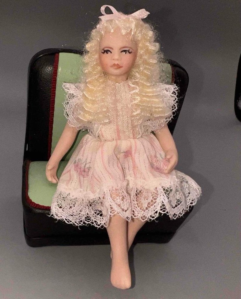 Miniature Dollhouse 1:12 Scale Porcelain Doll - Little Girl Doll - 4" tall from bottom of her feet to the top of her head. MINIATURE DOLLHOUSE 1:12 SCALE PORCELAIN SITTING LITTLE GIRL/CHILD BONNIE - CD20 MINIATURE DOLLHOUSE 1:12 SCALE PORCELAIN SITTING LITTLE GIRL/CHILD BONNIE - CD20 Click images to enlarge Description MINIATURE DOLLHOUSE 1:12 SCALE BONNIE SITTING LITTLE GIRL/CHILD THE CHAIR IS FOR DISPLAY PURPOSES ONLY, NOT INCLUDED IN THIS AD ARTISAN PIECE 4" TALL THESE ARE MADE BY ARTIST CINDY'S DOLLHOUSE In sitting position Arms do not move Costumed in little cotton print dresses Dolls sold by each Chairs are for display purposes only and not included in the listing SO CUTE! This is an adult collectible, not for children. Shipping Shipping cost: There is a promotion shipping cost of $6.95 for small and medium items, regardless of how many items you purchase, as long as they are on one single invoice. PLEASE NOTE: If you pay for your purchases on more than 1 invoice, I can no longer combine your invoices. Shipping will be $6.95 for each invoice and shipped separately. eBay now requires a separate tracking number for each invoice. I ship in the Domestic U.S. only. I no longer ship to International addresses. Large items over 1 pound are not part of the promotion shipping program and will go Priority Mail Shipping time: I ship through USPS Ground Advantage and Priority and tracking is entered into eBay as soon as I ship. I ship out within 24 hours. Terms of Sale I understand that sometimes, items need to be returned. If you need to return an item, please open a return request in the eBay Returns Center and return it through this venue. The miniature dollhouse items should be in their original packing/box and received in saleable condition within 30 days of your purchase. I charge no restocking fee. The return shipping is the responsibility of the buyer. About Us I will try to answer all questions and always try to describe these items as they are. Pictures sell! Auctiva offers Free Image Hosting and Editing. 300+ Listing Templates! Auctiva gets you noticed! The complete eBay Selling Solution. Track Page Views With Auctiva's Counter