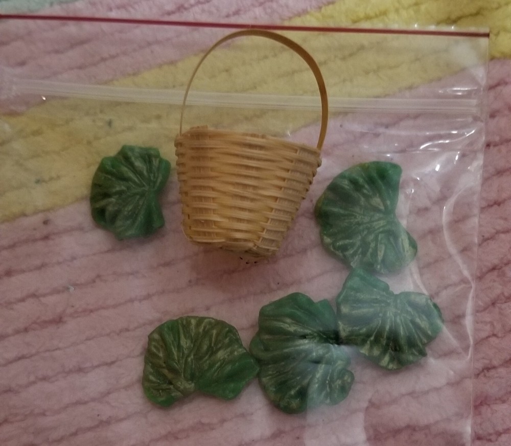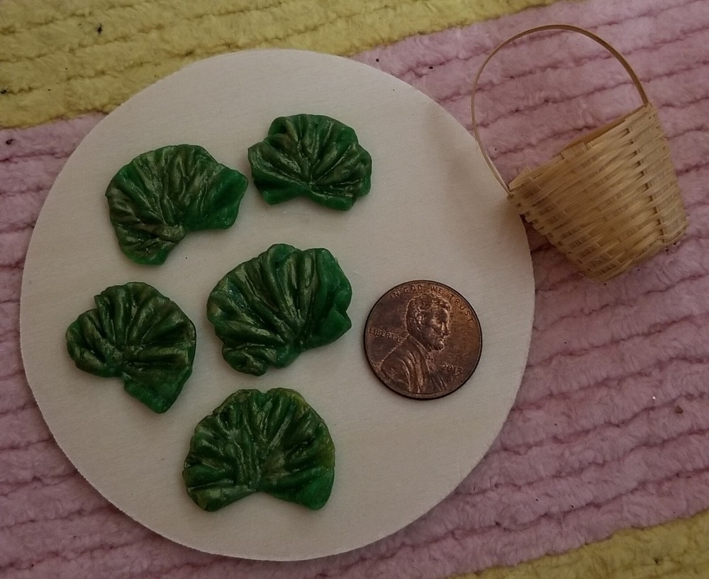 You are bidding on a cute, sweet 1:6 size miniature wicker Basket filled with 5 yummy, assorted size, loose Lettuces, exactly as shown! (Please note: the bunny doll, table & other items are not included & are used for your scale example only ;) This item is new, & handmade by me from clay & painted; excellent quality & made to be sturdy and durable for any doll house, bakery, farmers market / kitchen, or similar room box / diorama type display purposes! :) We will always happily combine shipping on multiple wins or purchases on items ending within the same week to help save you $$. Otherwise, we generally ship same or next day. Thanks so much for stopping by to check out all our auctions! Happy Bidding! :)