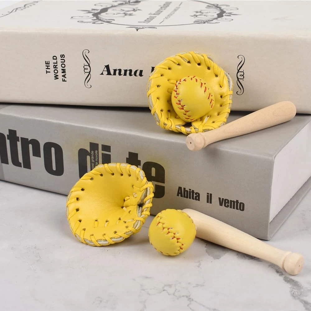 Miniature Baseball Bat Set - 9Pcs Dollhouse Sports Accessories with Glove & Ball