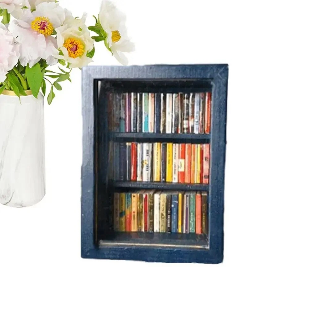 Miniature Bookshelf Anxiety Bookshelf Wooden Tiny Book Library Stress8965