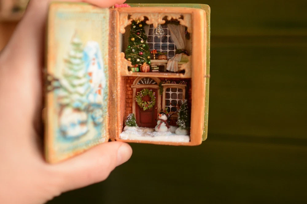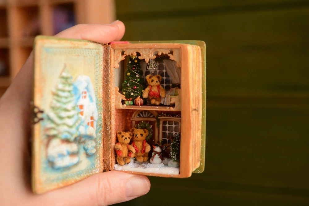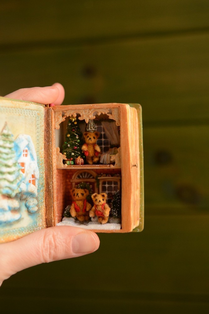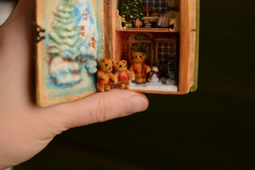 Hi Friends! Let me introduce you to my OOAK handmade miniature bears in a Christmas box This is collaborative work. Tatiana Nechiporenko makes the box house. *** Each limb was crocheted separately and then thread-shaped. Painted with oil He is 5-way thread jointed. It means that the head and the limbs are movable. *** Size: height is nearly 1.5 cm Materials: yarn, sewing thread, glass beads *** Not suitable for children due to the small size. A toy for display, not for play. *** Packed with eco-friendly materials. So you may recently gift it, or just enjoy it yourself! *** Made in a smoke-free home. *** Please note - Colors may vary slightly on your computer screen.