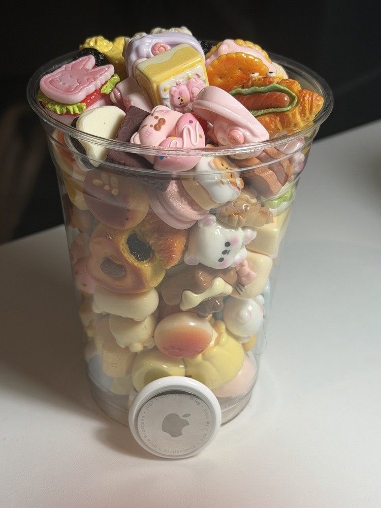 This listing is for a random mixed lot of miniature food charms / fake food cabochons, originally purchased as custom-selected pieces and later mixed during DIY projects. Quantity & Size • Each cup: 500ml+ (18 FL. OZ.) • 4 full cups for $40 • Cups are packed completely full, filled to the top (often slightly overflowing) • Total weight is substantial (multiple pounds) What You Will Receive • A random assortment of miniature food items • Includes desserts, bread, pastries, and cute character-themed pieces • Mixed styles and designs (see photos for examples) • No selection or specific designs guaranteed Suitable For • DIY crafts • Decoden projects • Slime add-ins • Fridge magnets • Craft fairs or resale (individual pieces often resell for $1–2 when made into magnets) Important Notes • This is a random lot; contents will vary • Items are not edible • Minor cosmetic wear may be present due to prior mixing • Photos show representative examples, not the exact contents of each cup Shipping & Pickup • Local pickup available in Decatur, Atlanta area • Shipping available (buyer pays shipping)
