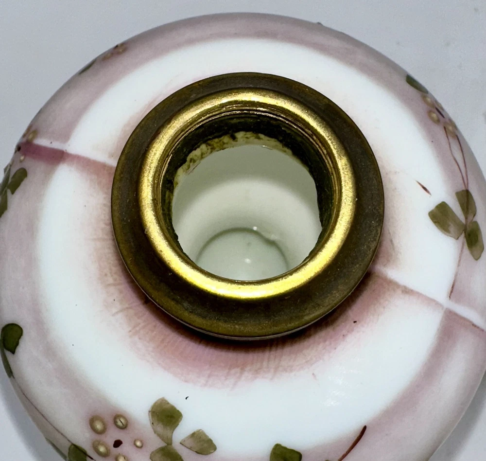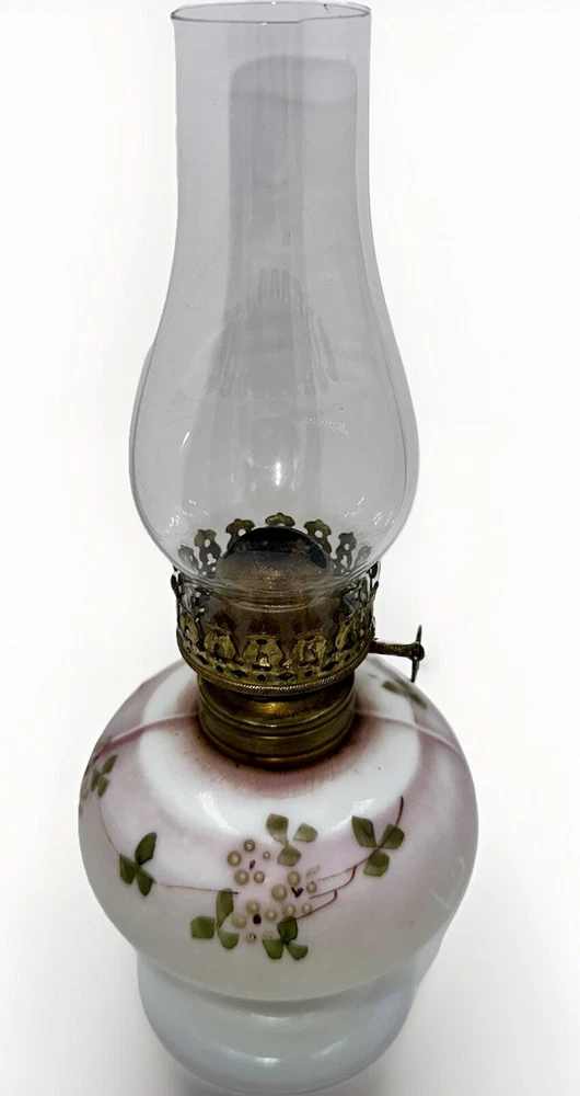 Antique miniature oil / kerosene table or bedside lamp Opal glass with a satin finish and enameled floral motif - very pretty! Clear glass chimney included Antique burner included with working wick Very nice antique condition with no chips or cracks - ready to use Approximate measurements ( may vary slightly ): 9 1/4" high to top of shade 4 3/8" high to top of brass collar 3" diameter base Please look closely at the pictures; they are part of the description. We are describing what we see but you are the expert. If described as VINTAGE or ANTIQUE, it should never be expected to look like new. Color or image quality displayed on your device may not be exactly as the item appears in person, but we do not alter our pictures. SHIPPING - Please Read: Our items are typically shipped UPS with prices fixed by the carrier. We have added the USPS option in the case of shipping to a P.O. Box. The selling platform retains a percentage of our shipping fees so not all of what you pay actually comes to us. Shipping charges outside the U.S. are not set by us since we use ONLY the eBay International Shipping Program for that. We are not able to invoice you or offer shipping discounts for international sales. Please consider that you are easily able to browse our listings to purchase items that cost us time (hours at auctions and "clean-up" time) and money (travel, shipping supplies, etc.) to present to you. Please contact us with any serious concerns before posting low feedback or star ratings. We will do our best to respond promptly. 1 4E 25 Track Page Views With Auctiva's Counter