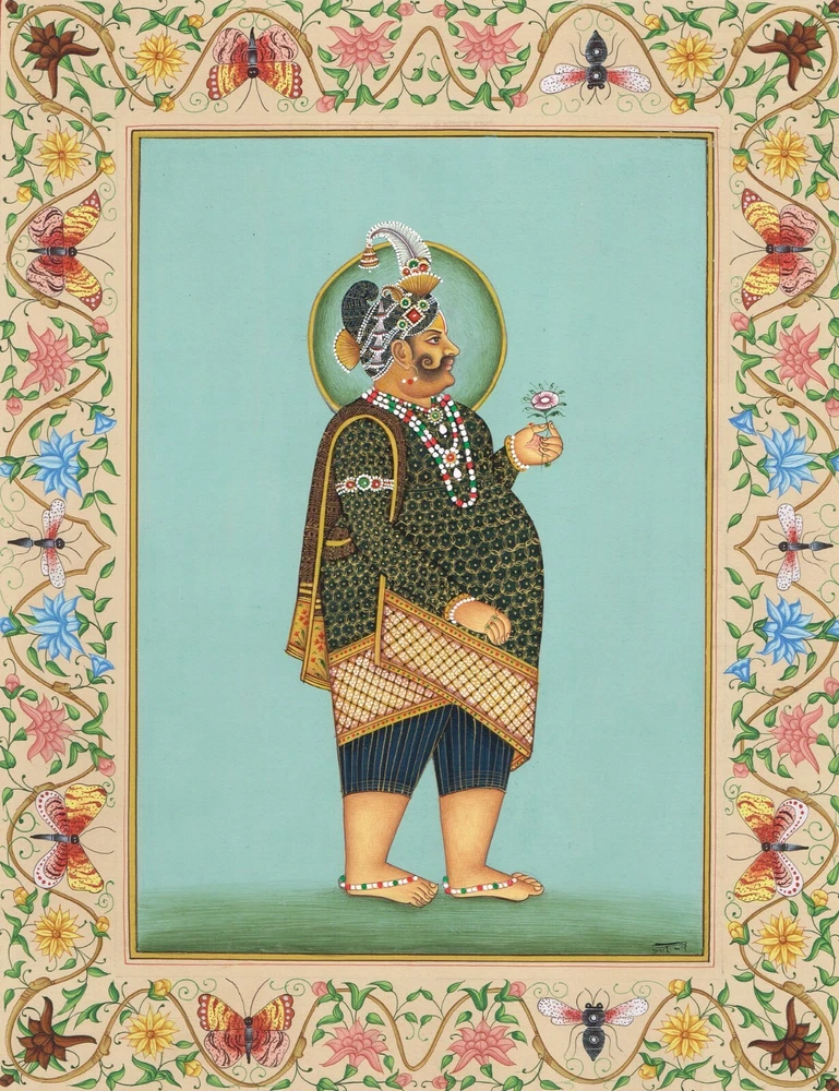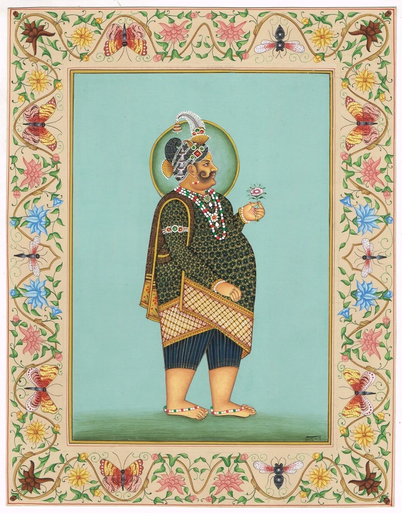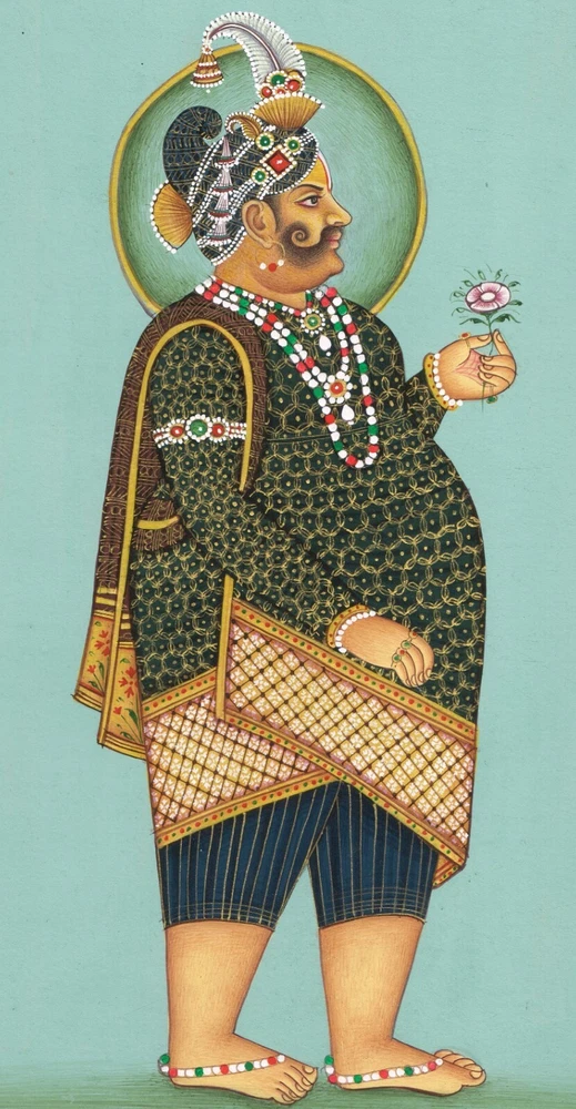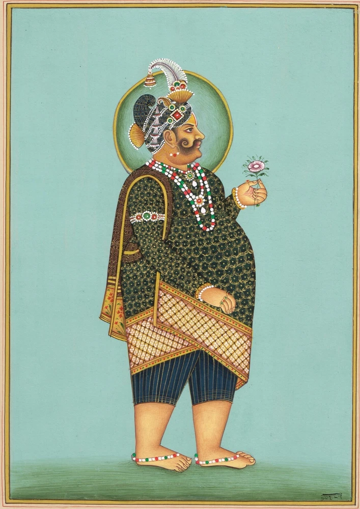 Miniature Portrait Of Maharaja Sawai Madho Singh Jaipur On Paper 10.5x13.5 Inch Madho Singh was the next ruler after Ram Singh expired in 1880 and he died heirless, He was devoutly religious. Despite his five marriages and his 18 official mistresses, he was heirless. We can see the clothes and other items of Madho Singh at the Maharaja Sawai man Singh museum, one remarkable exhibit in set of voluminous cloths of Madho Singh who was over two meters tall,1.3m wide and weighed 225Kg. He had made a lot of progress to the state of Jaipur and was rewarded by British for his loyalty. DESCRIPTION Painted using Squirrel hair brushes. Natural s tone colors used in painting. Million dots of colors can be seen by lens. Artist has painted this beautiful piece using the stone color and squirrel single hair brush. Ideology behind using stone colors is to give it a natural, lively and lifelong look. SHIPPING We will dispatch your order as per our handling time. NOTE :: This product does not include any import duty, Buyer will be responsible for the same in their respective country. Have a nice day
