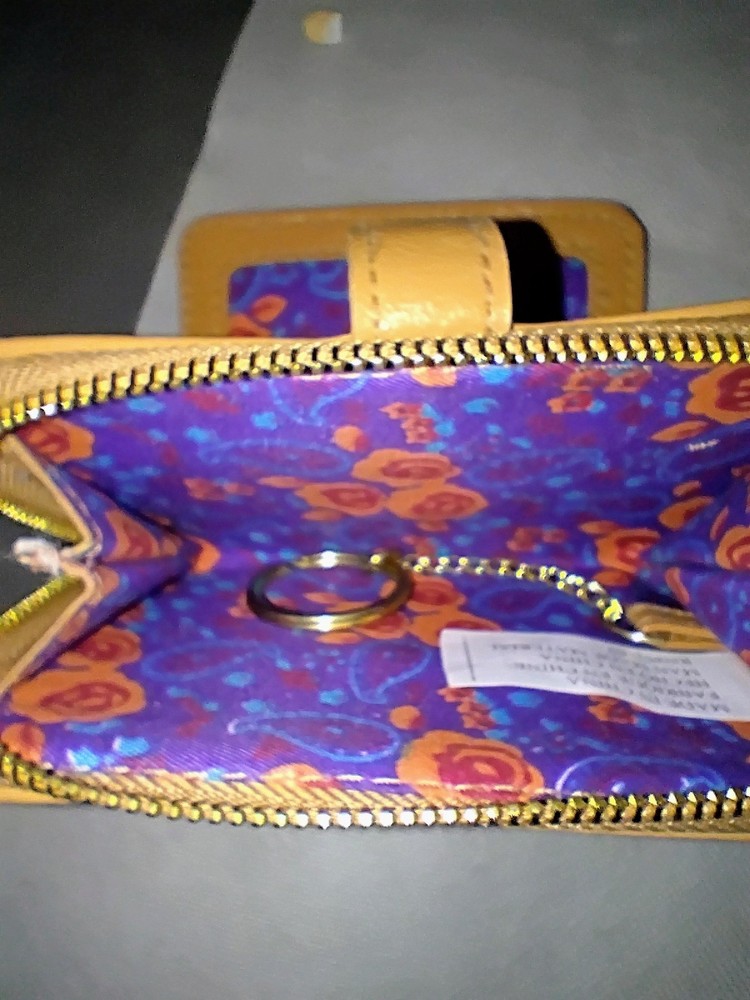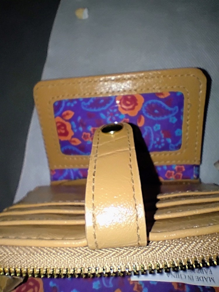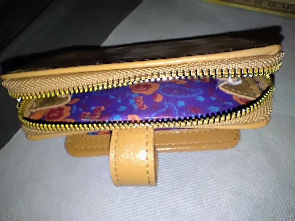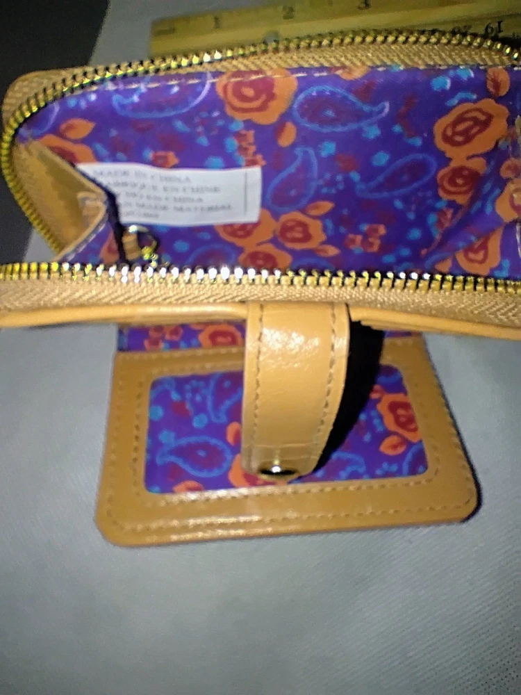 Crafted for the fashion-conscious, the Minicci Card, Coin, Keychain Wallet combines functionality with a floral charm. This beige zip-around wallet measures 4.5" x 3", making it a compact accessory for your everyday essentials. With a theme centered around money, it's designed to hold your credit cards and coins securely while adding a touch of elegance to your ensemble. Accented with a playful button, strap, and zipper, the wallet ensures your belongings stay snug and organized. The floral pattern brings a subtle, yet vibrant touch to the design, making it a versatile piece for any woman's collection. Whether it's a day out or a casual meet-up, this Minicci wallet is a smart and stylish choice for keeping your necessities close at hand.