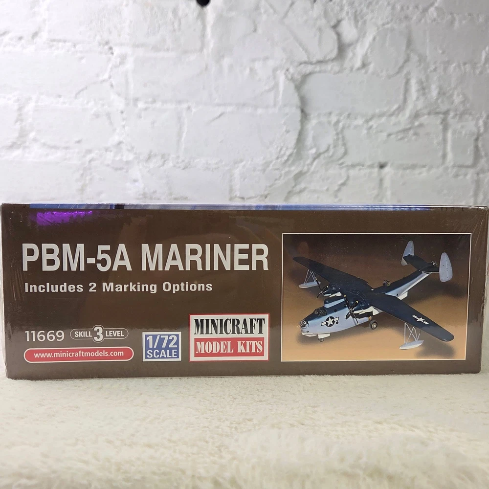 Construct an iconic flying boat with this detailed Minicraft PBM-5A Mariner plastic model kit. Featuring 'All New Tooling' for exceptional accuracy, this kit boasts recessed panel lines and Cartograf decals for a realistic finish. With two building options and U.S. Navy markings from 1945 and 1947, you can recreate a piece of aviation history. Perfect for model building enthusiasts and history buffs looking for a rewarding project. Measurements: • Box Length: 15 in • Box Width: 9.5 in • Box Height: 2.5 in Type: Airplane Kit Scale: 1:72 Subject: Lockheed SR-71 Blackbird Theme: Militaria Features: Recessed Panel Lines, Cartograf Decals, 2 Building Options Assembly Status: Unassembled Kit Set Includes: Aircraft Material: Plastic Unit of Sale: Single Unit Model: Lockheed PBM-5A Mariner Style: Post-War Design Keywords: flying boat, model airplane, plastic kit, skill level 3, aviation, military aircraft, WWII, historical model, display model, craft project, hobby kit, Lockheed Martin