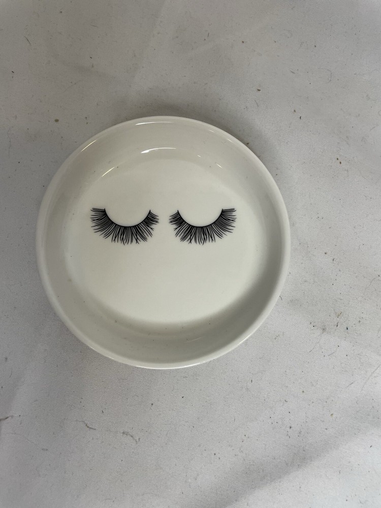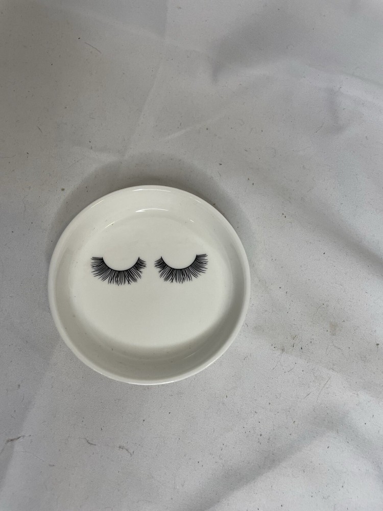 This charming ceramic dish is perfect for holding rings, small jewelry items, or even false eyelashes! Its minimalist white design with printed eyelashes adds a chic touch to your vanity or bedside table. • Material: Ceramic • Design: Minimalist eyelash print • Color: White with black design This versatile dish can be used as: • A ring holder for your favorite jewelry pieces • An eyelash storage tray for easy access • A decorative item for your dresser or makeup station In excellent condition and ready to ship. Ideal for personal use or as a thoughtful gift for someone who loves beauty accessories and organization.