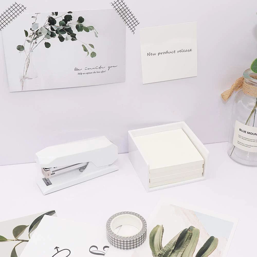 Minimalist White Sticky Note Holder Dispenser - Clear Acrylic Memo Pad Stand for