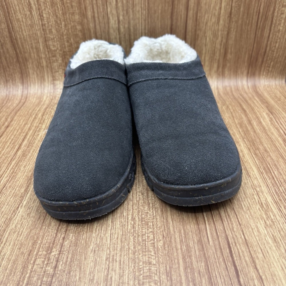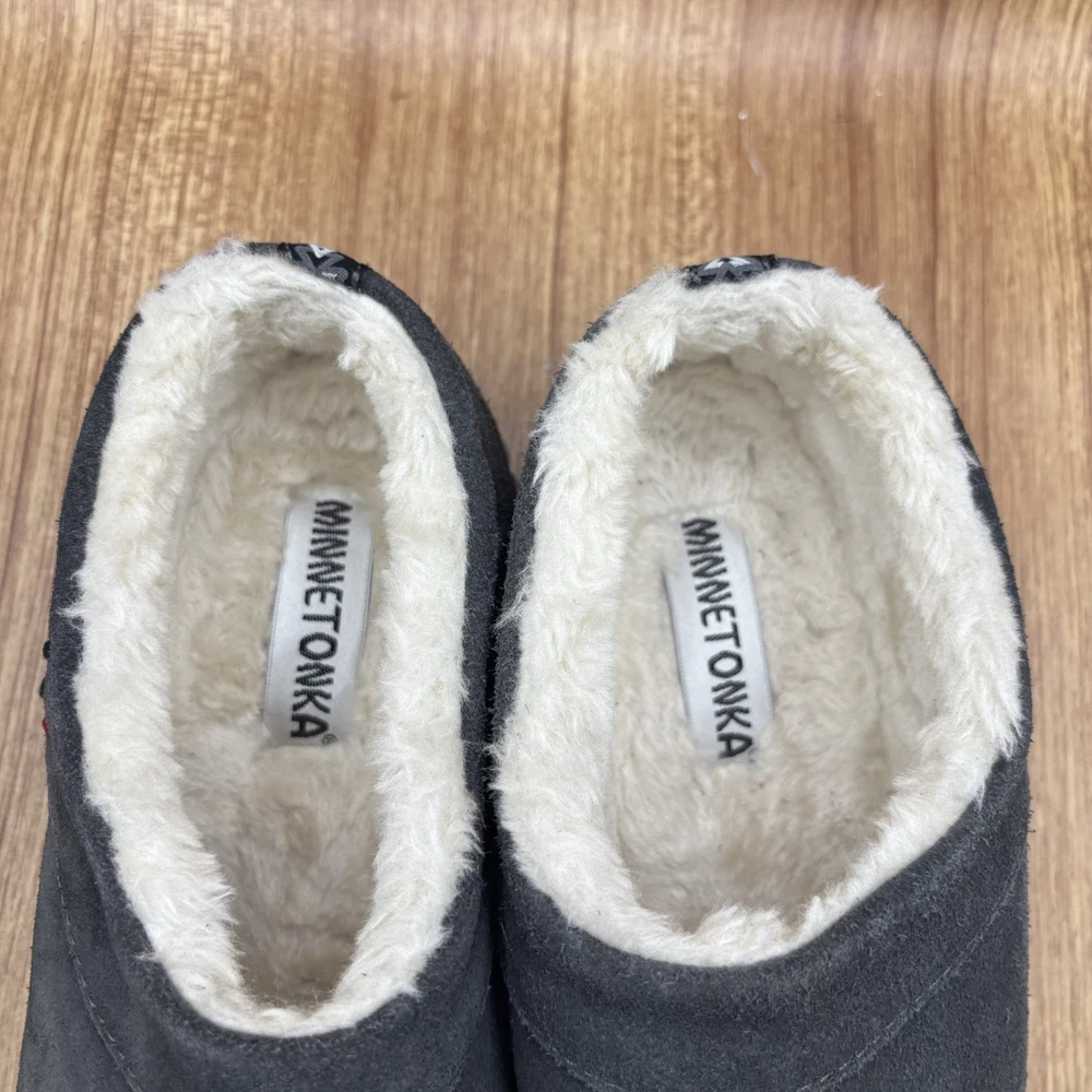 Minnetonka Neva Suede Slip-on Clog Slipper Charcoal Womens Size 10 M Plush lining Water and stain resistant See photos