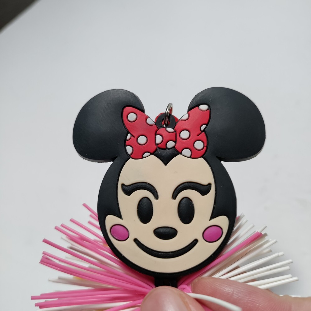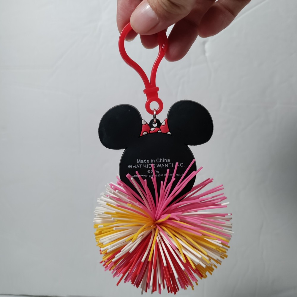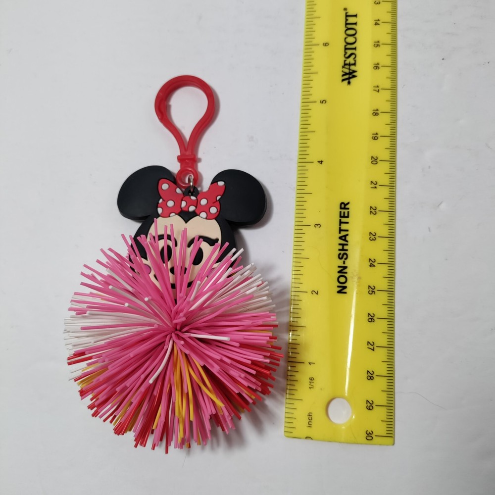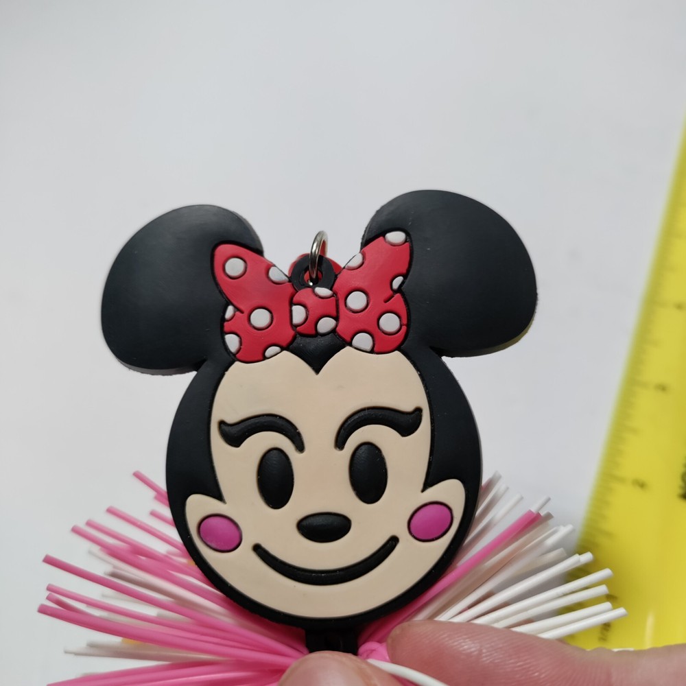 Minnie Mouse Emoji Koosh Ball Keychain Clip Key Ring Pom Pom