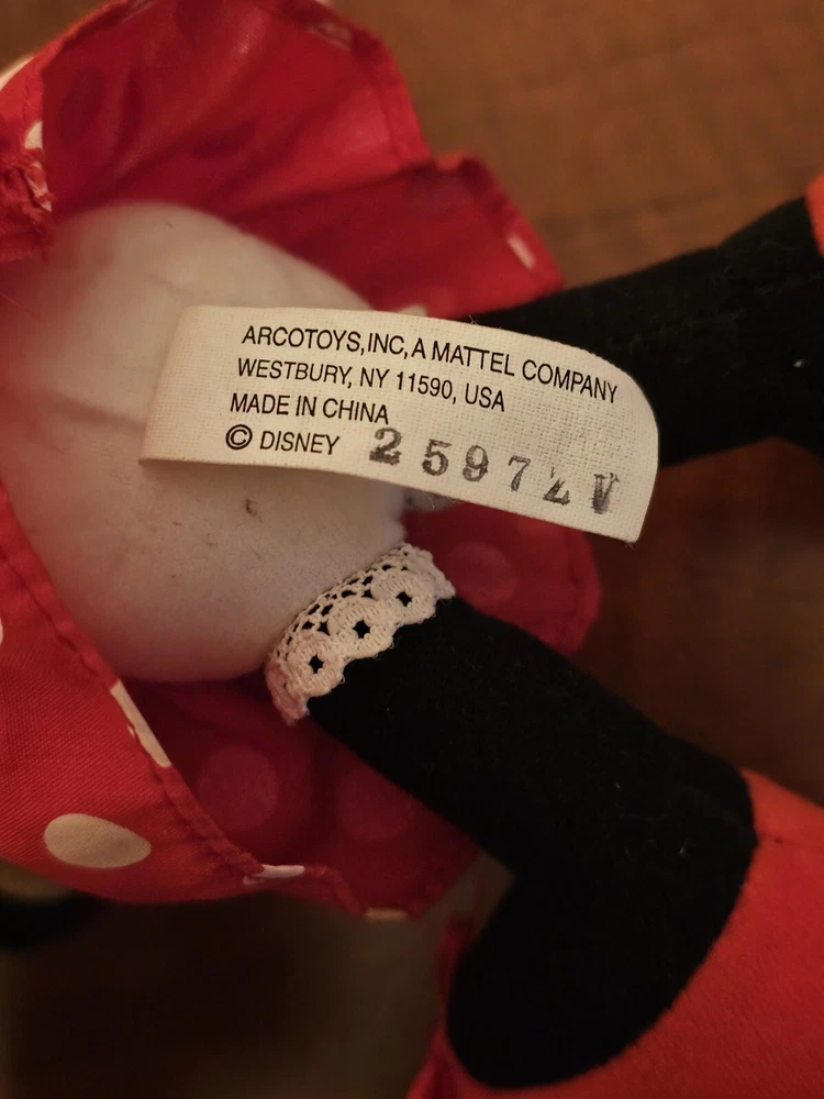 Minnie Mouse Vinyl Plush 9" Toy by Mattel Disney Arcotoys W/ Torn Tag. Condition is Used. Shipped with USPS Ground Advantage.