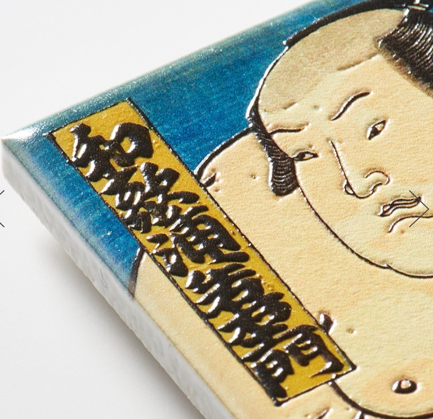 Mino Ware Tile Magnet Sumo Kunisada Design 3D Printed Texture Japan Made 313