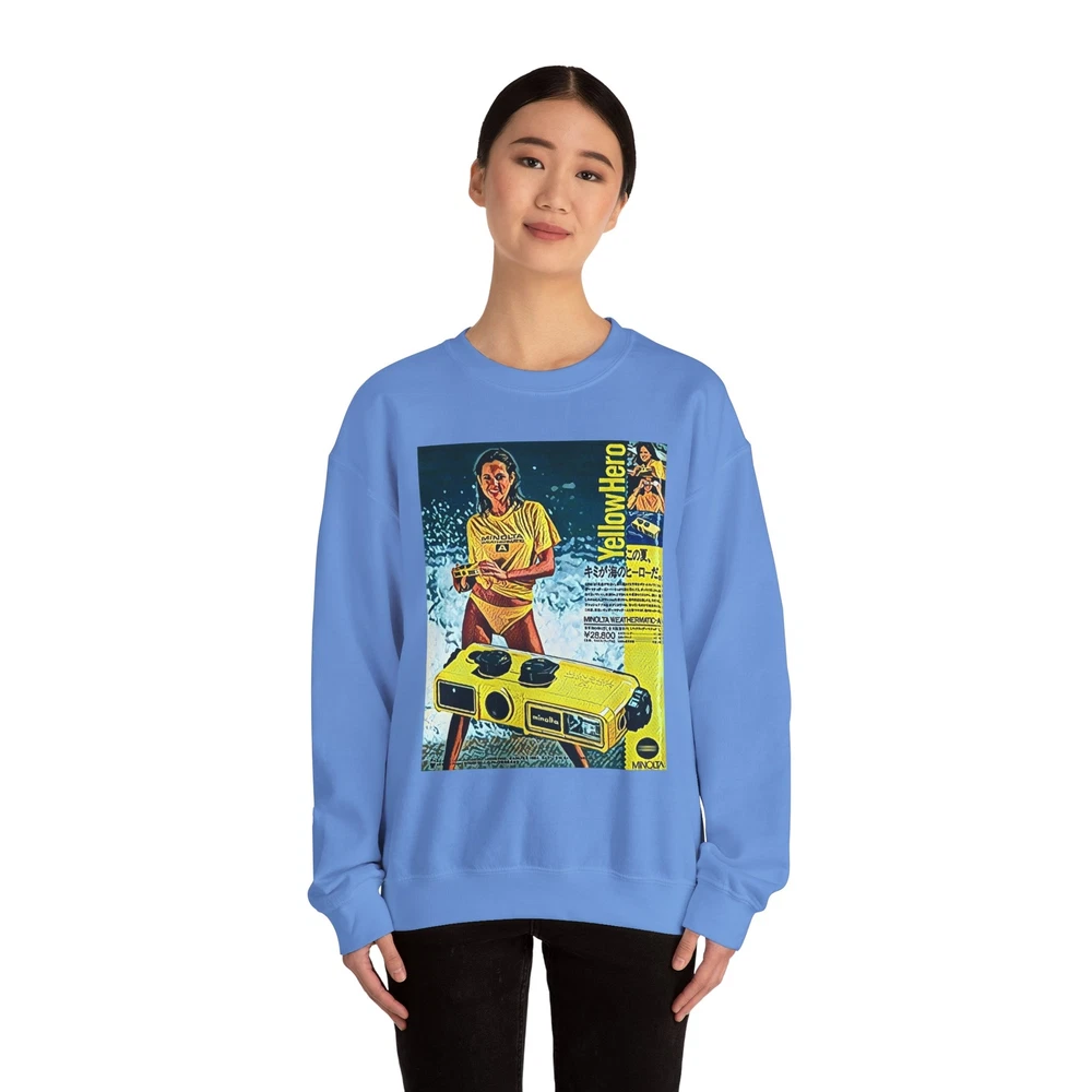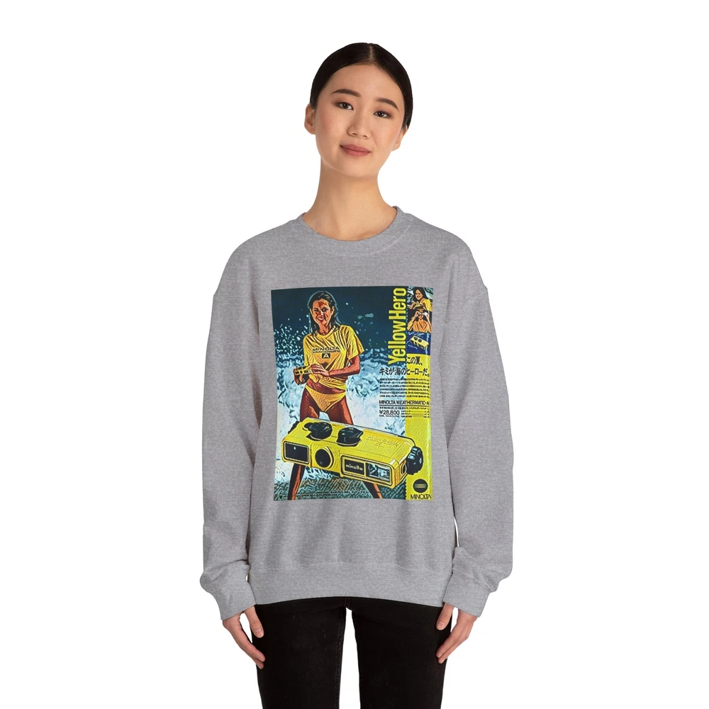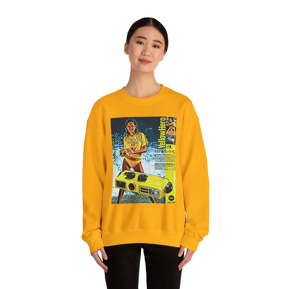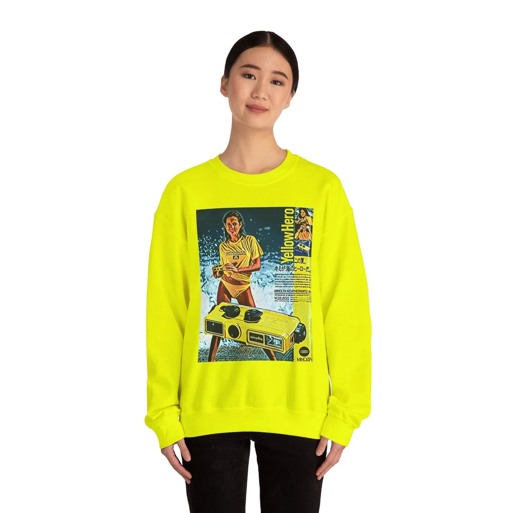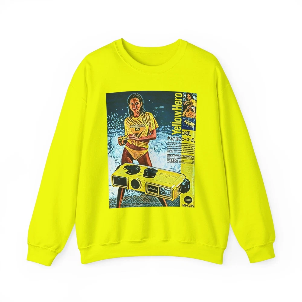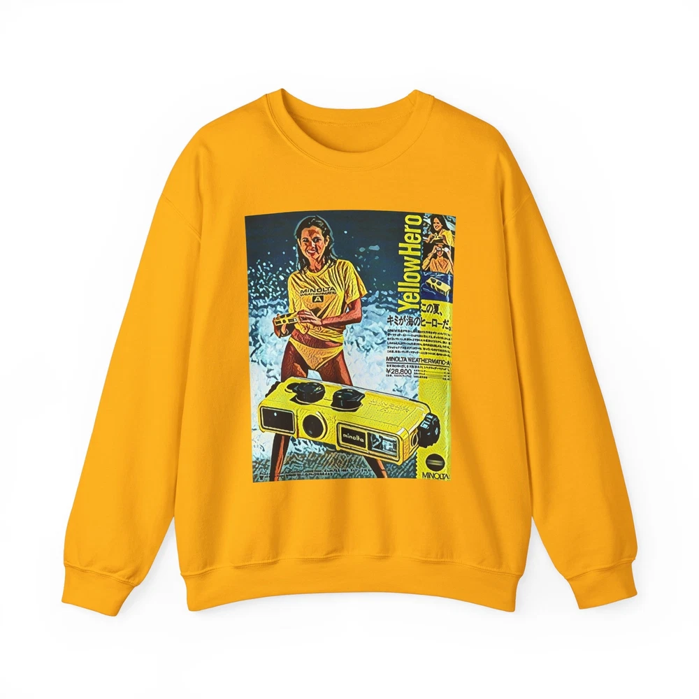 Minolta Yellow Hero Retro Graphic Print Unisex Heavy Blend™ Crewneck Sweatshirt