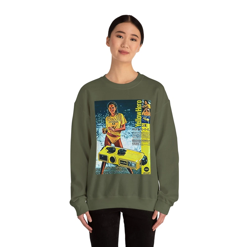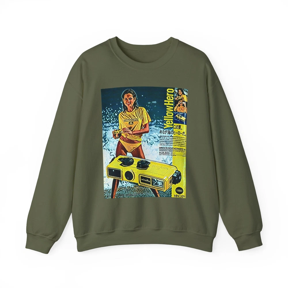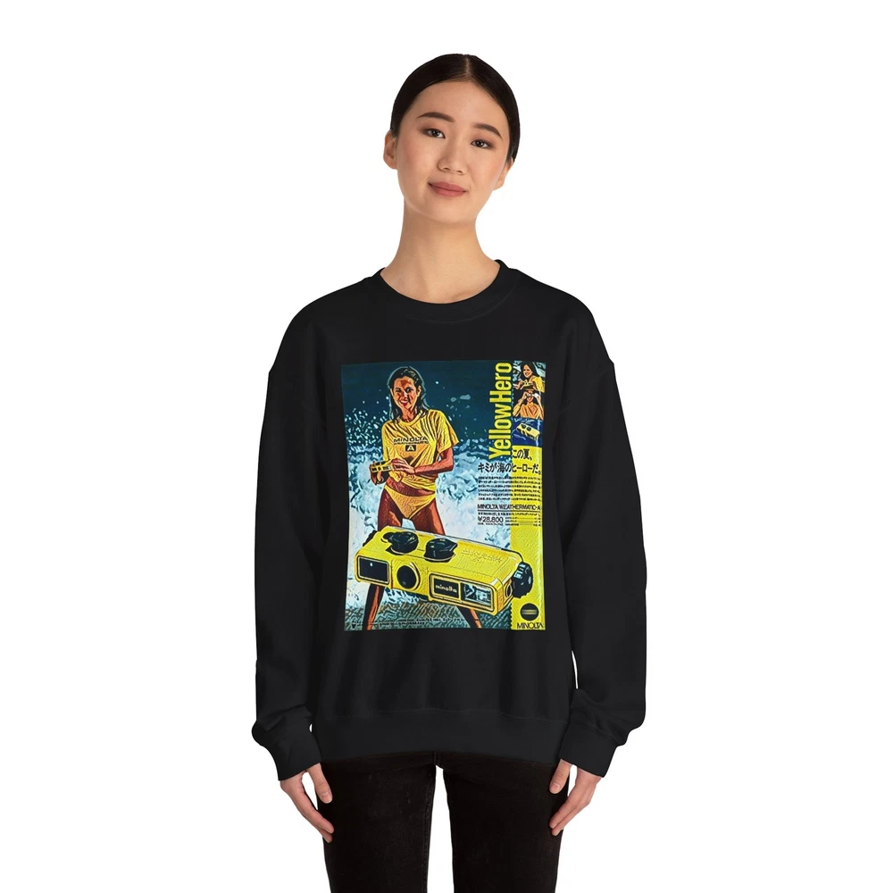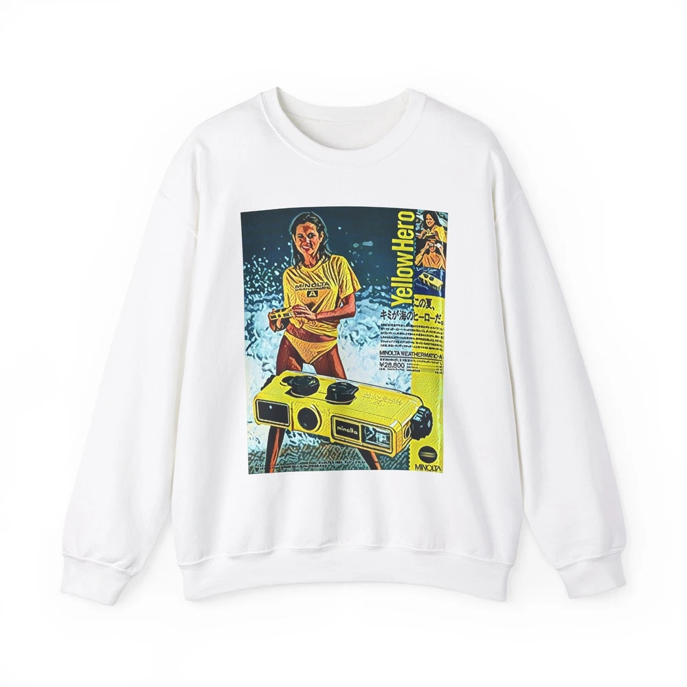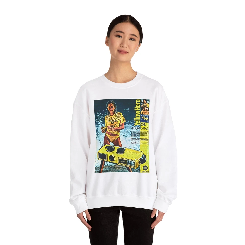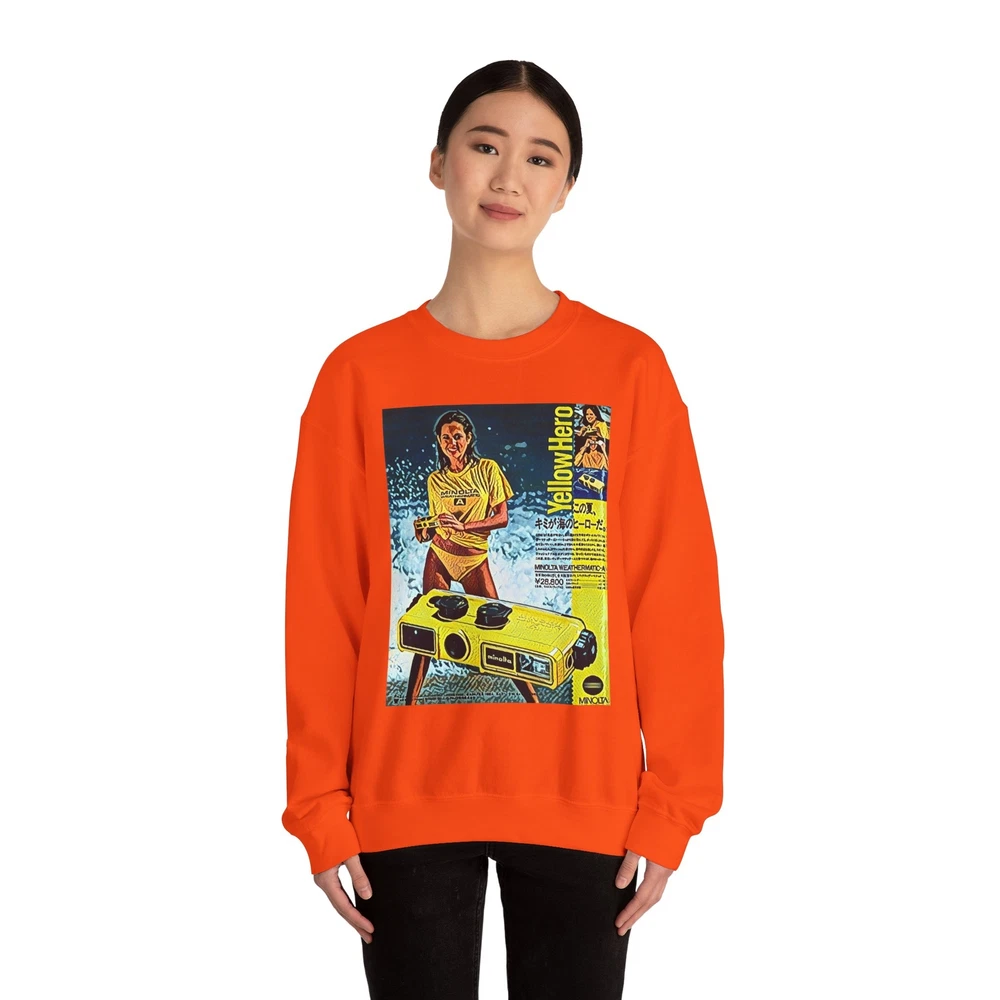 Minolta Yellow Hero Retro Graphic Print Unisex Heavy Blend™ Crewneck Sweatshirt