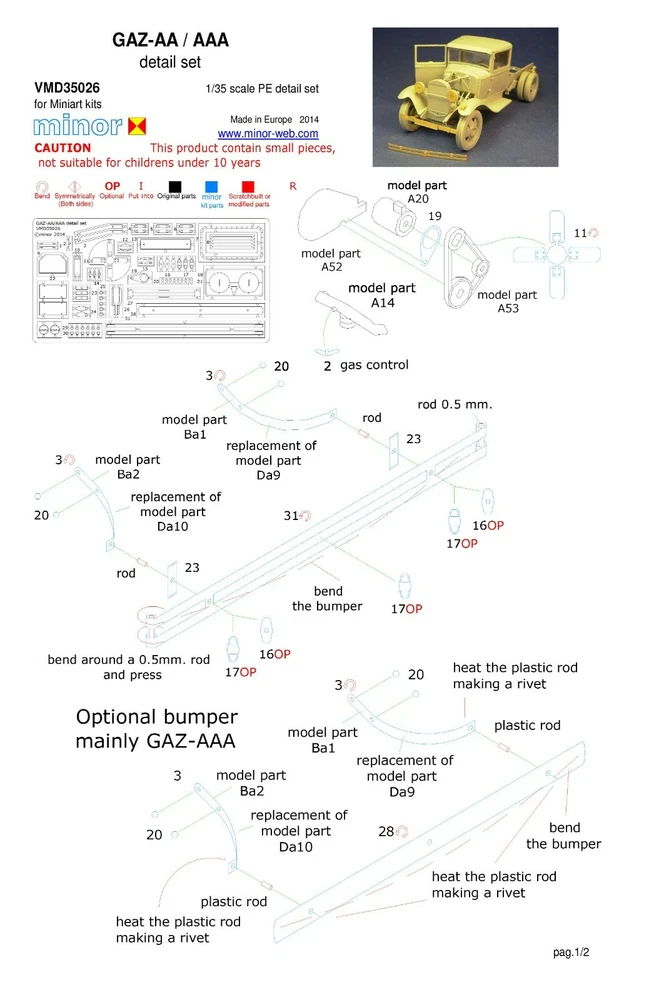 Minor 1/35 GAZ-AA / AAA detail set VMD35026 31 different parts – for Miniart kits Free Shipping Worldwide - ships direct from Spain. Hobby Link International is based in New Jersey and Canada. Satisfaction guaranteed. Either you get the product or your money back, simple as that!