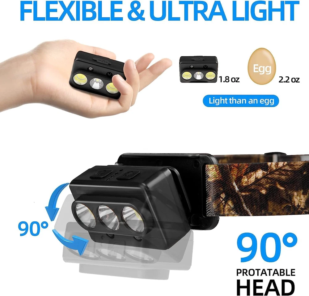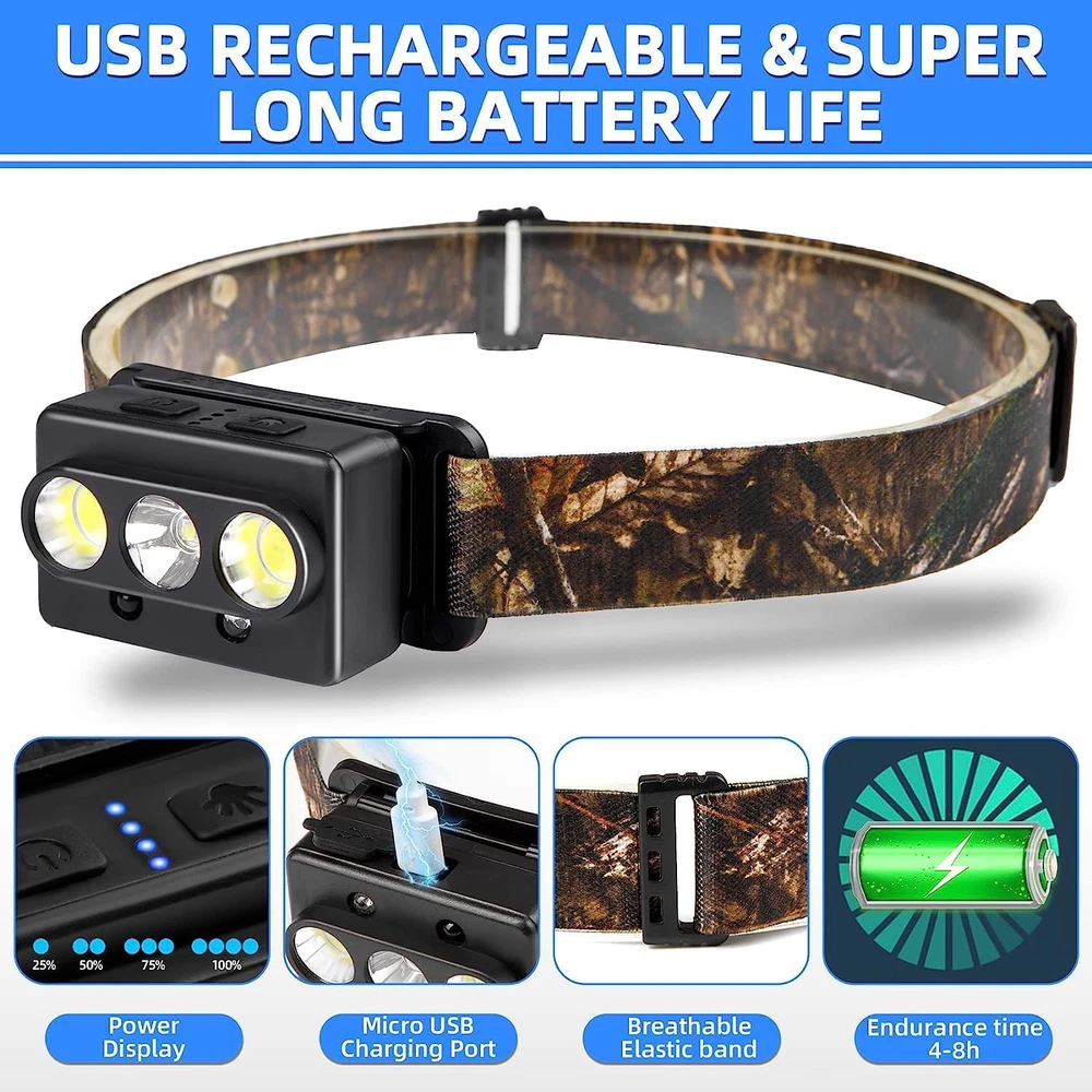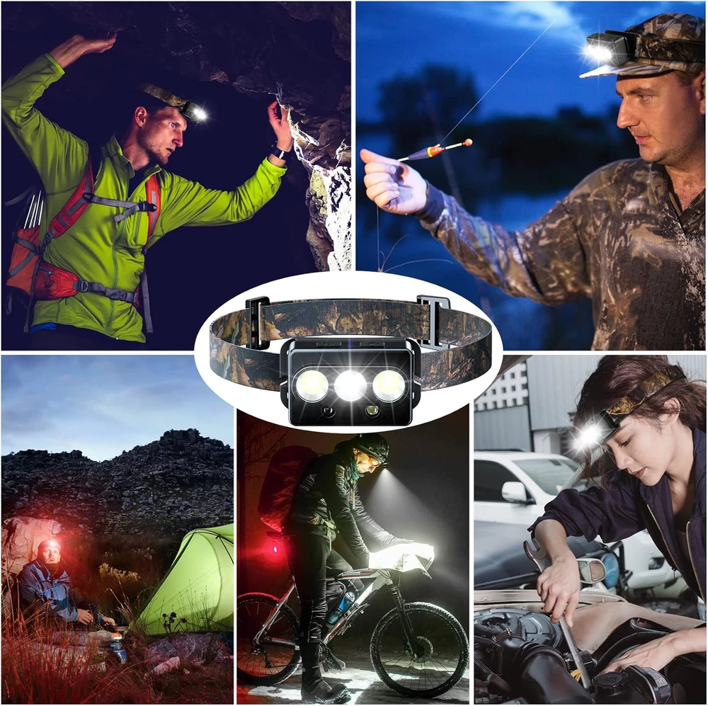 Minsk Rechargeable Headlamp, 2 Pack Headlamps for Adults, Head Lamps Outdoor LED High Brightness & 8 Lighting Modes: Minsk Led headlamp has 8 lighting modes. You will get the exact brightness (Xpg white light: high, low; Cob white light: high, low; Xpg+Cob all light, red light - constant red light, flashing; ) on the main light and sidelight. You can easily turn the lights On/Off by waving your hand, which is more convenient and avoids soiling the headlamp when your hands are dirty. Motion detection offers you the convenience you need for any use in the dark. Magnetic And Detachable Headlamp: Designed to solve lighting challenges from any angle, the bright headlamp body also easily detaches from the head strap and mounting bracket to become a versatile headlamp flashlight with a built-in magnetic base for attachment to metallic surfaces. This headlamp pro can be used as a camping light, tent light, car repair light, etc. Lightweight & Waterproof:Compact headlamps weigh only 1.8 ounce, you won't even notice it when wearing it. Made of premium ABS material, it's durable and longlasting. Fully sealed casing and silicon button cover can protect your led head lamp from water, sweat, splashing, dust etc. Great super bright headlamp for long time night running, walking, reading, camping, hiking, Fishing etc. Rechargeable And Adjustable: Rechargeable headlamp is compact and powerful. USB batteries provide 4-8 hours of operation. No need to replace batteries. The built-in battery is easy to charge with a Usb cable. Minsk offers 2 packs of headlamps for you to use in rotation. IPX6 waterproof rating makes it safe to use even when it rains. The waterproof headlamp uses an adjustable ergonomically designed elastic headband to ensure safety and comfort, making this light ideal for extended use. NO WORRY GUARANTEE ??? we are so confident you will love our headlamp that we offer money back guaranty with complete lifetime warranty. Click "ADD TO CART" button now and have your Minsk headlamp!