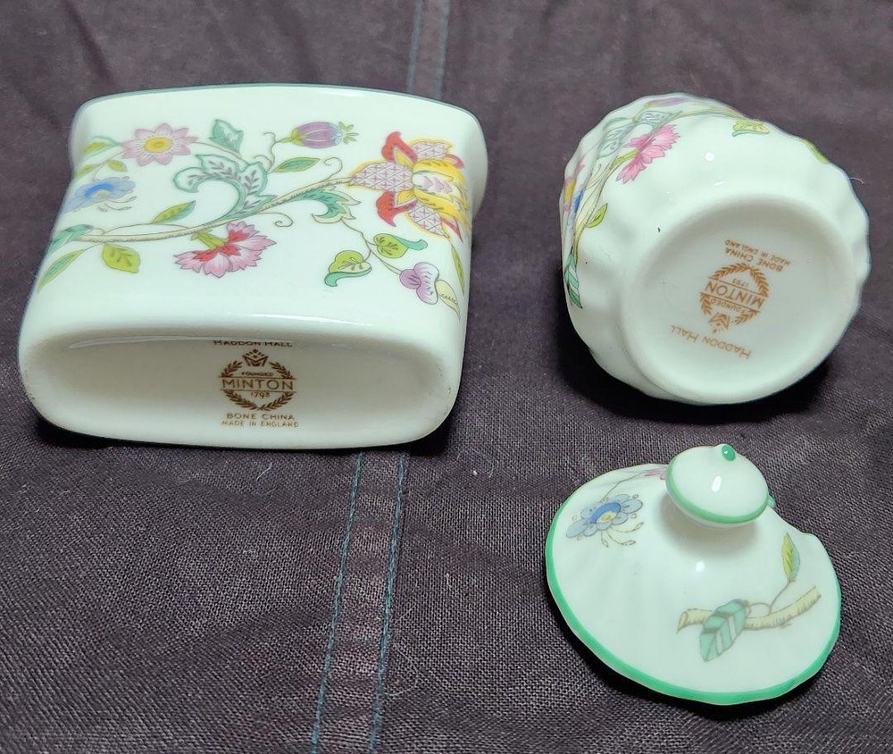 Minton Haddon Hall Pot Sugar Pot Napkin Stand Round Plate 3-Piece Set Used Description No noticeable scratches or stains. No box. Sugar pot (mini): Height 7.5 cm (including lid) Napkin stand: Height 6.5 cm Round plate: Height 2 cm, width 13.5 cm Bulk Discount Discounts are available for bulk purchases of small items! For more information, please contact us by specifying the desired product. Payment We accept ebay Management only. Please make a payment withen 3days after the purchase. Shipping Fedex or Japan Post I am sorry to inform you but I do NOT ship to the address which is not registered on eBay. I will inform you the tracking number by email once shipped it out. The item will be shipped out from Japan. International Buyers - Please Note: ·Import duties, taxes and charges are not included in the item price or shipping charges. These charges are the buyers responsibility. ·Please check with your countrys customs office to determine what these additional costs will be prior to bidding/buying. ·These charges are normally collected by the delivering freight (shipping) company or when you pick the item up do not confuse them for additional shipping charges. ·We do not mark merchandise values below value or mark items as gifts US and International government regulations prohibit such behavior. Provided by HARU