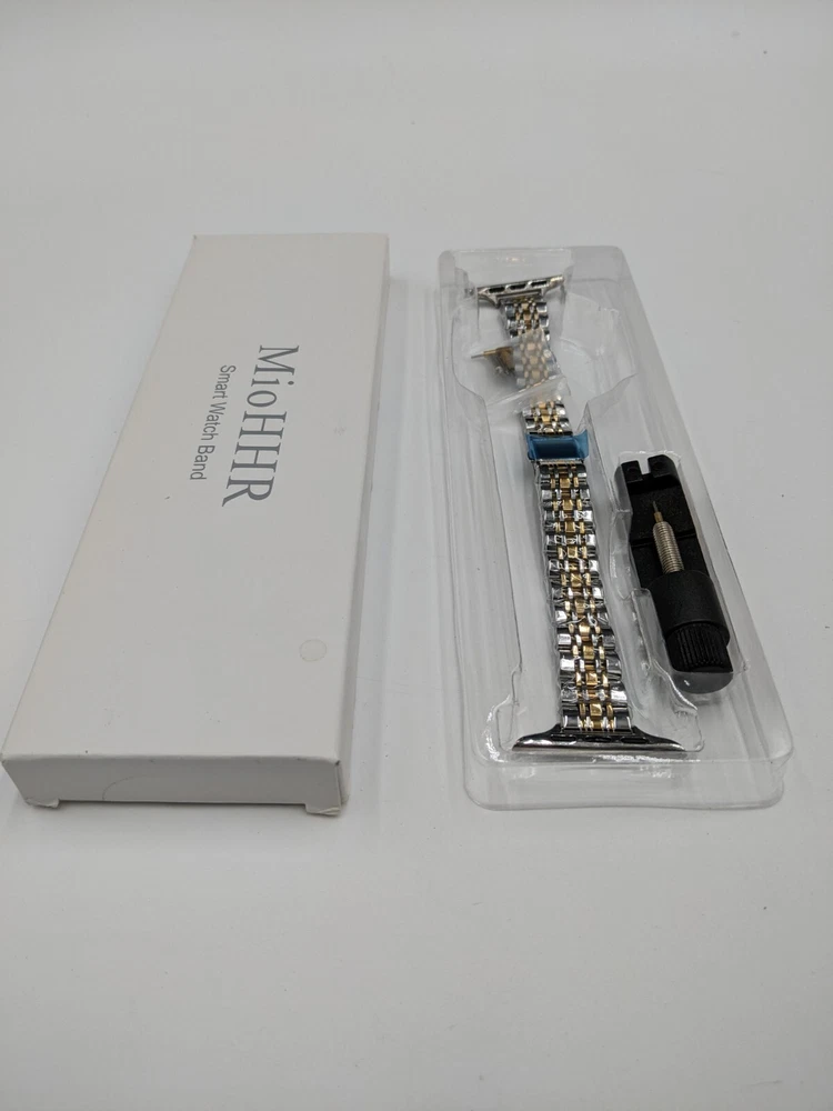 MioHHR Stainless Steel Watch Band For Apple Watch Goldtone Silvertone 42mm 44mm. Shipped with USPS Ground Advantage.