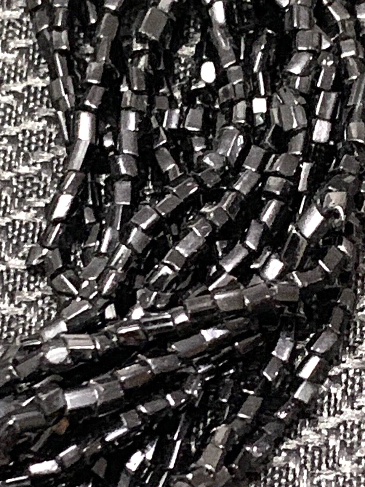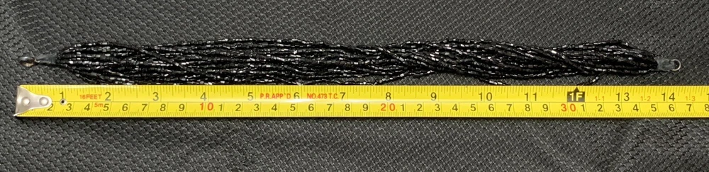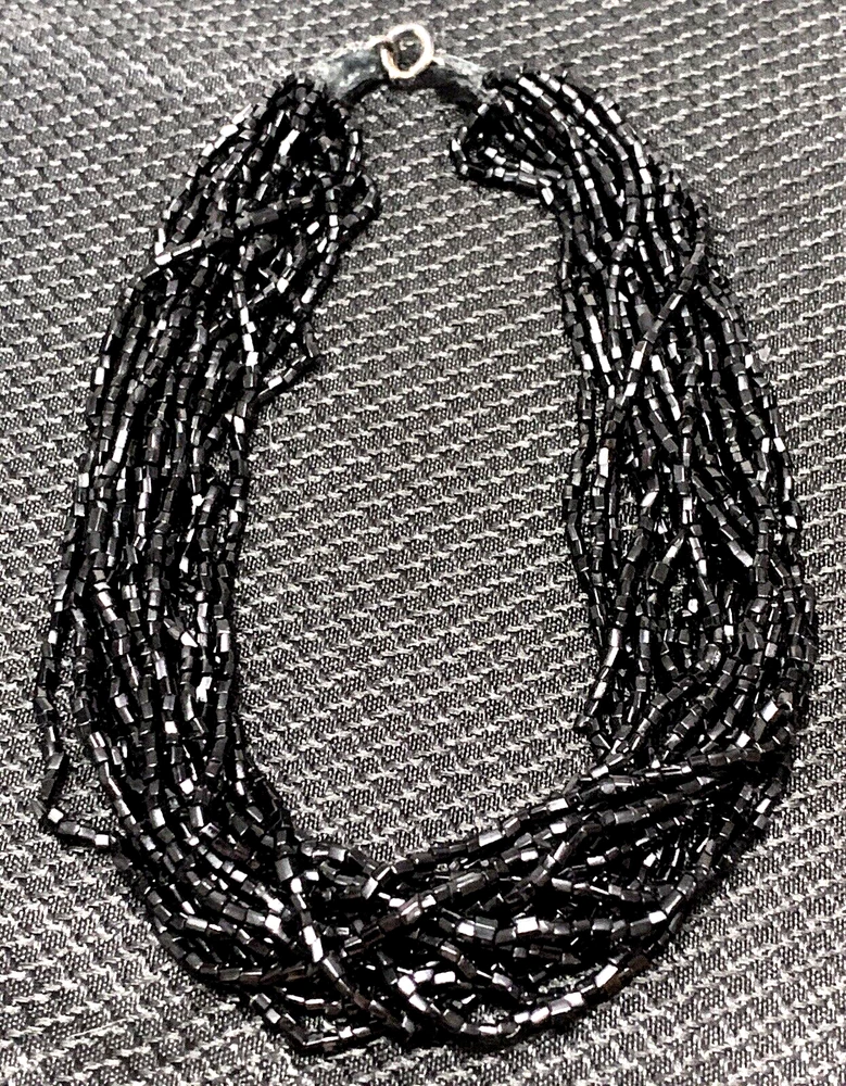 Beautiful vintage Black seed bead choker that is unsigned but does have a 1950s sterling spring ring clasp, therefore possibly a Miriam Haskell piece. This is a 14” small necklace, choker. please ensure it will fit before purchase.
