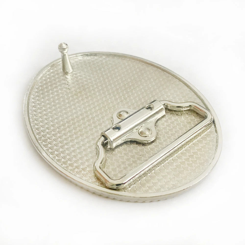 Add a touch of Western style to your outfit with this versatile mirror surface belt buckle. Made from high-quality zinc alloy, this buckle is perfect for men and women who love the American cowboy and cowgirl theme. Measuring 8.7x6.8cm in size, it fits 1.5-inch belts and features a design that will make you stand out in the crowd. Whether you're into retro or cowgirl/cowboy, this Western buckle is a perfect addition to your collection. It's easy to personalize and has a unique accent that will make you feel confident and stylish. So, why wait? Get your hands on this belt buckle today and add a touch of Western flair to your wardrobe.