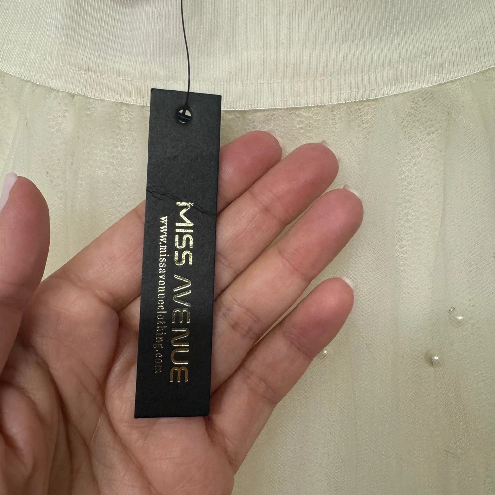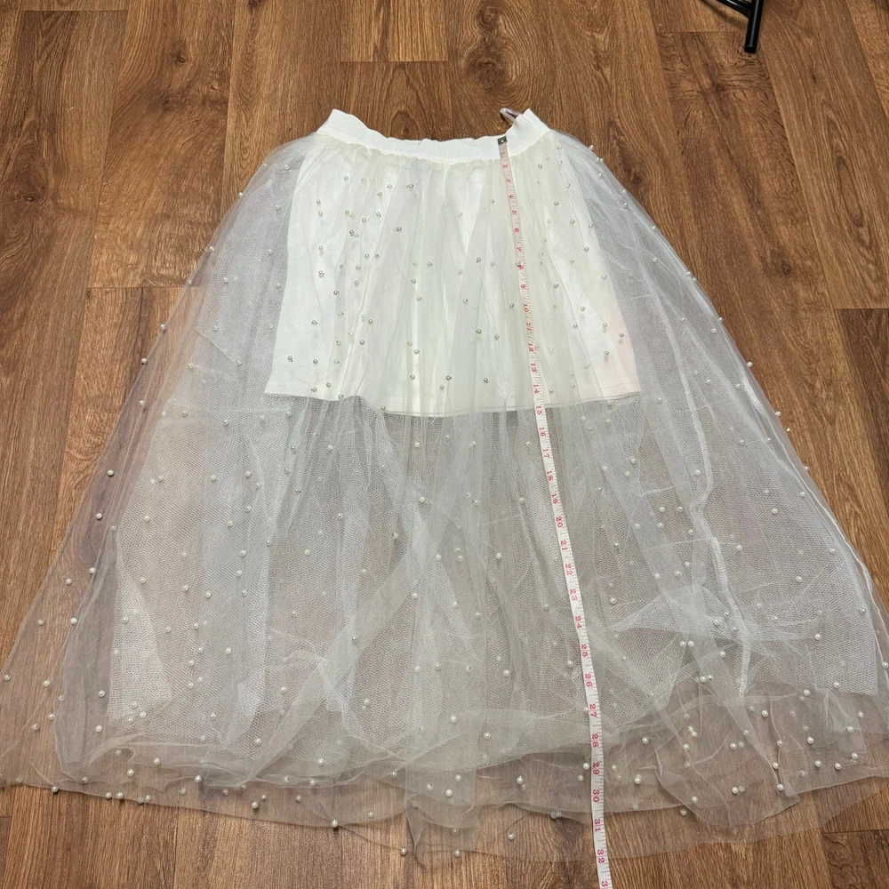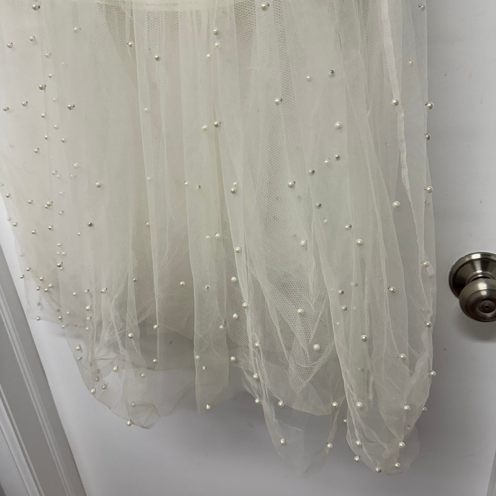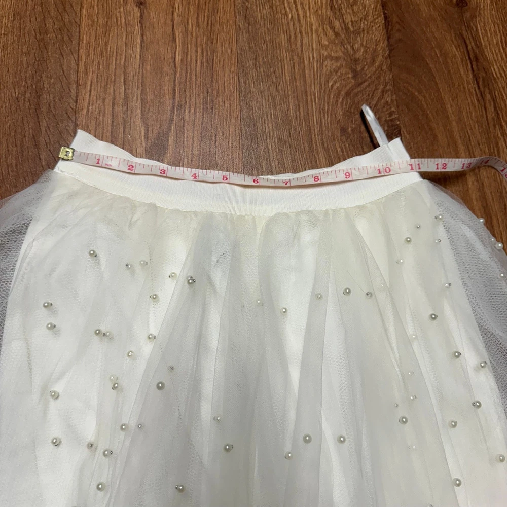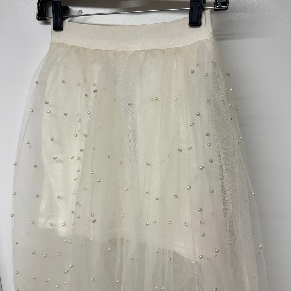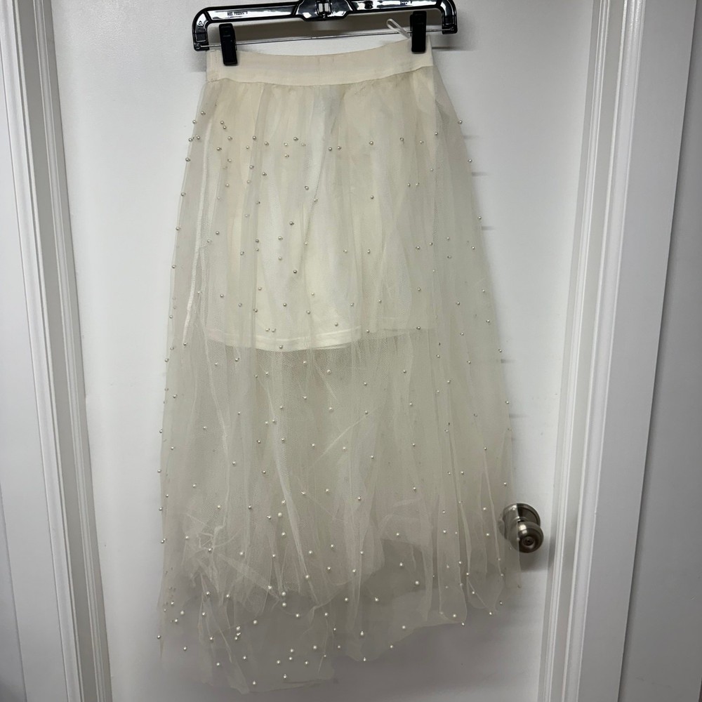 Miss Avenue Womens Cream Tulle Pearl Skirt Mini Midi A Line Size Small New with tags, however has some discoloration on the inside of the lining as seen in the last picture. Perfect for wedding, engagement, bridal shower, prom, homecoming, valentines, birthday party, costume, dance!