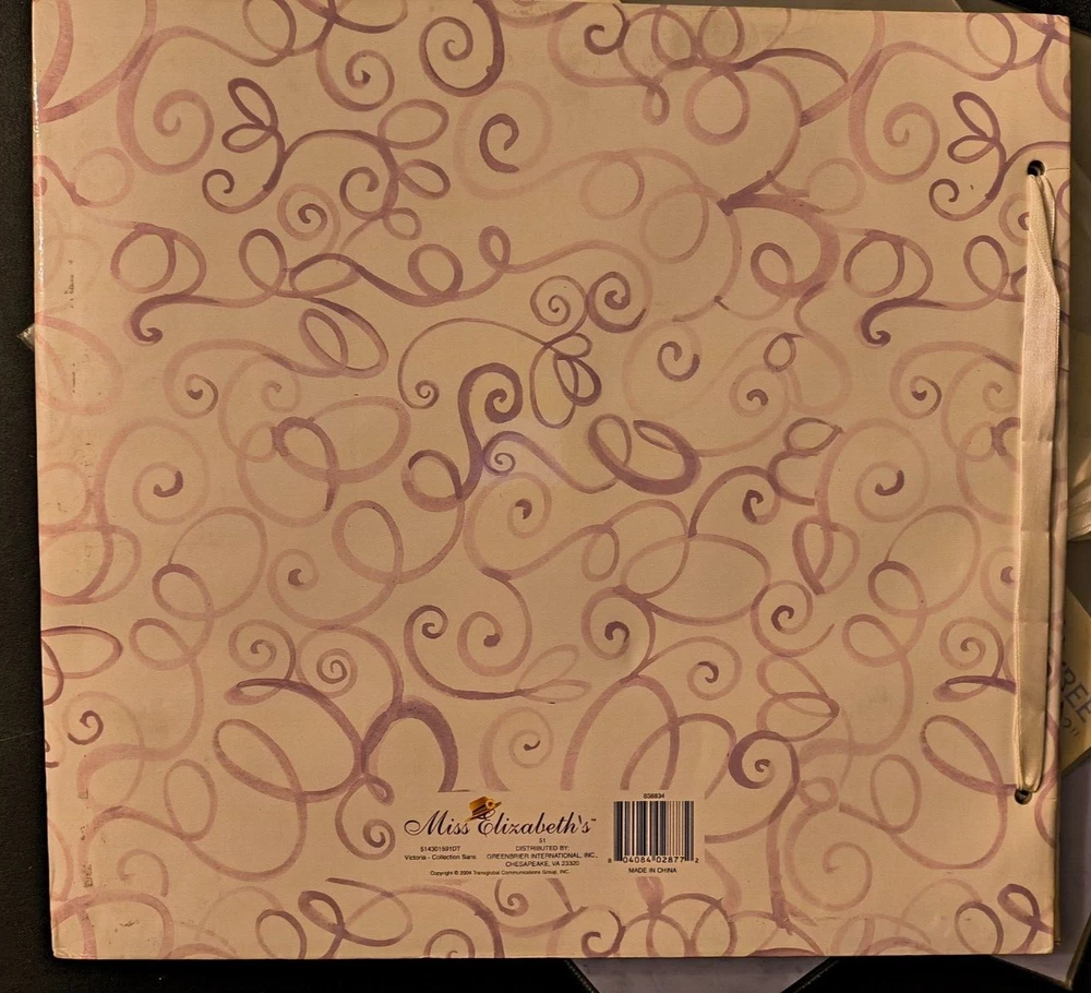 This is a Miss Elizabeth's 12" x 12" Victoria Sans scrapbook album with 20-page protectors. It is designed for arts & crafts and is ideal for storing and displaying photos. The album size is 13.25 x 12 inches. It is not handmade. All new in package. Be sure toview "Sellers other items" I will happily combine shipping onmultiple items purchased. To takeadvantage of combined shipping, all you need to do is add the items youwant to buy to your cart, and you’ll see the combined shipping total atcheckout. I know shippingis expensive, but it is still cheaper than your time and gas!