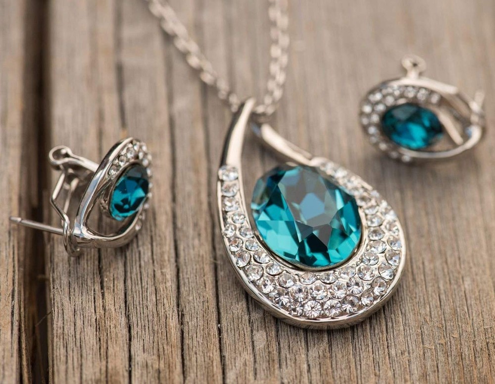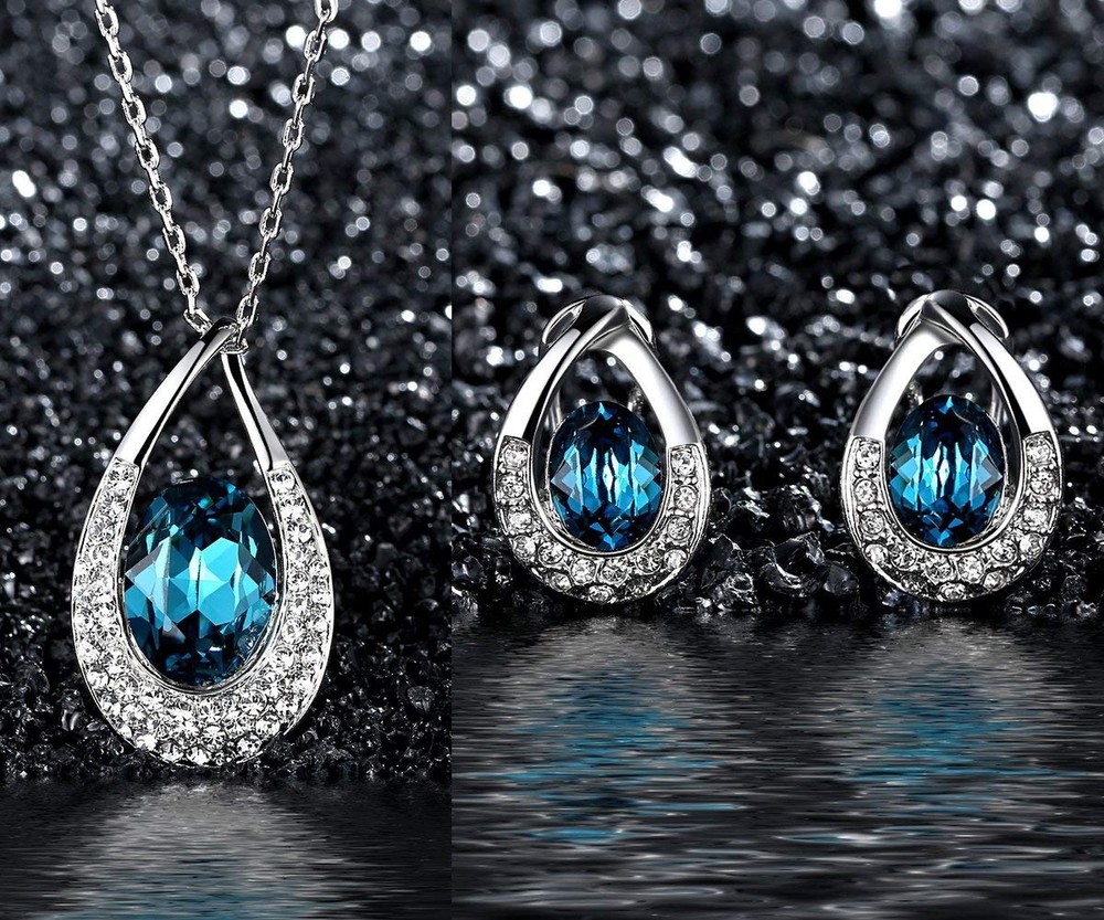 [Presented by Miss New York] Leafael "Angel's Teardrop" Made with Premium Crystals Blue Zircon Jewelry Set Earrings Necklace, 18" +2", Nickel/Lead/Allergy Free, Luxury Gift Box Product Details Color: crystal Brand: Leafael MPN: SNEYT0061SILVER UPC: 722703827943 EAN: 0722703827943 Department : womens Date First Available : January 2, 2018 Manufacturer : Leafael Brand, Seller, or Collection Name: Leafael Metal stamp: Not stamped Metal: alloy Material: Crystal Item Length: 3.7 inches Chain: Cable Clasp: Spring Ring Clasp Resizable: No Number of stones: 12 Model number: SNEYT0061SILVER Our women's fashion jewelry collections are made with premium crystals. Exquisitely exclusive design allows its wearer to stand out with their refined fashion sense and be worn with any kind of attire be it classy or casual. Ideal accessory gift for women of all ages! Made with environment friendly materials for our sensitive customers. Packed with exclusively elegant white, silver-embossed jewelry gift box protection as well as the much needed aesthetics. Lifetime money back and lifetime replacement guarantee in case of any damage that might occur through regular everyday use.