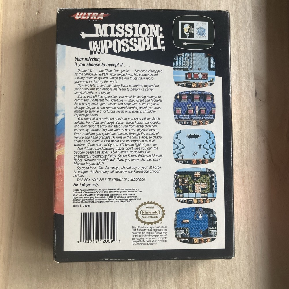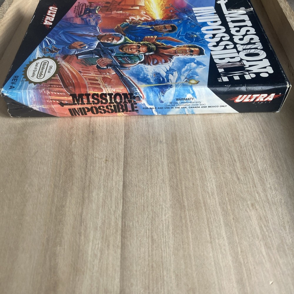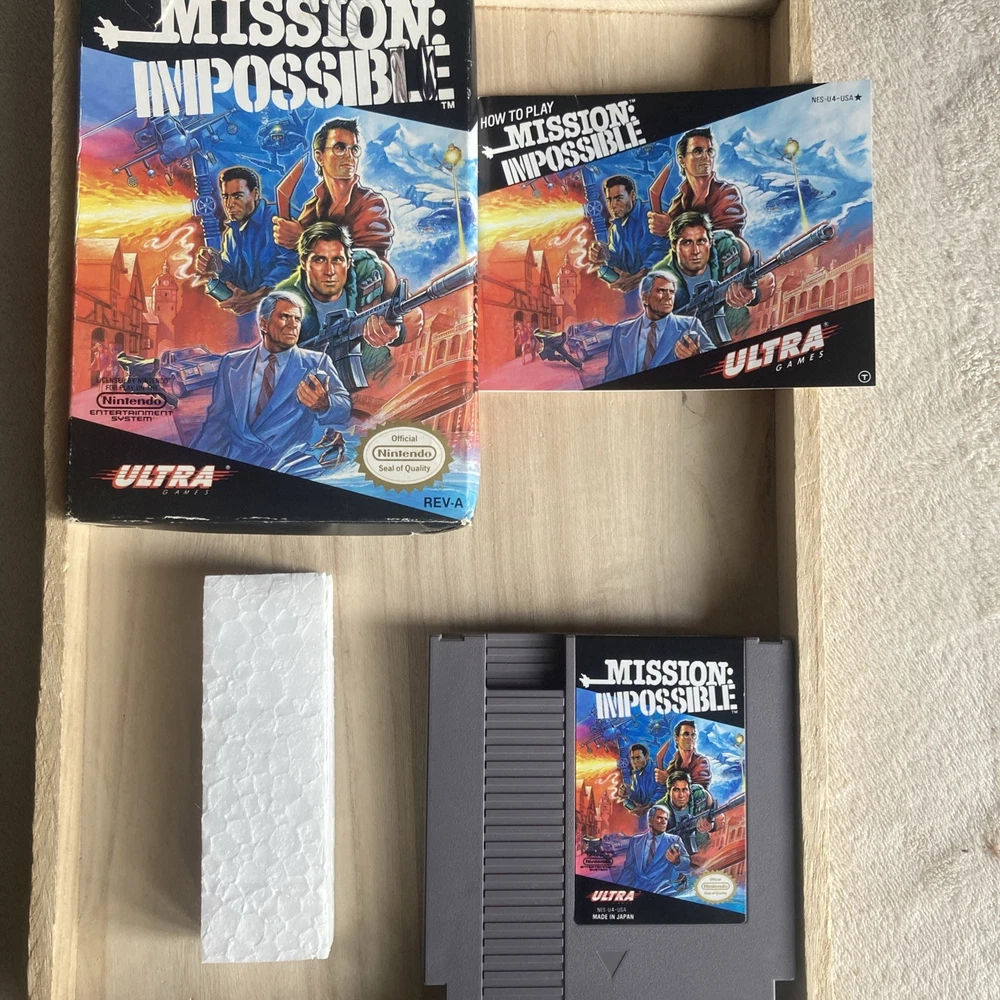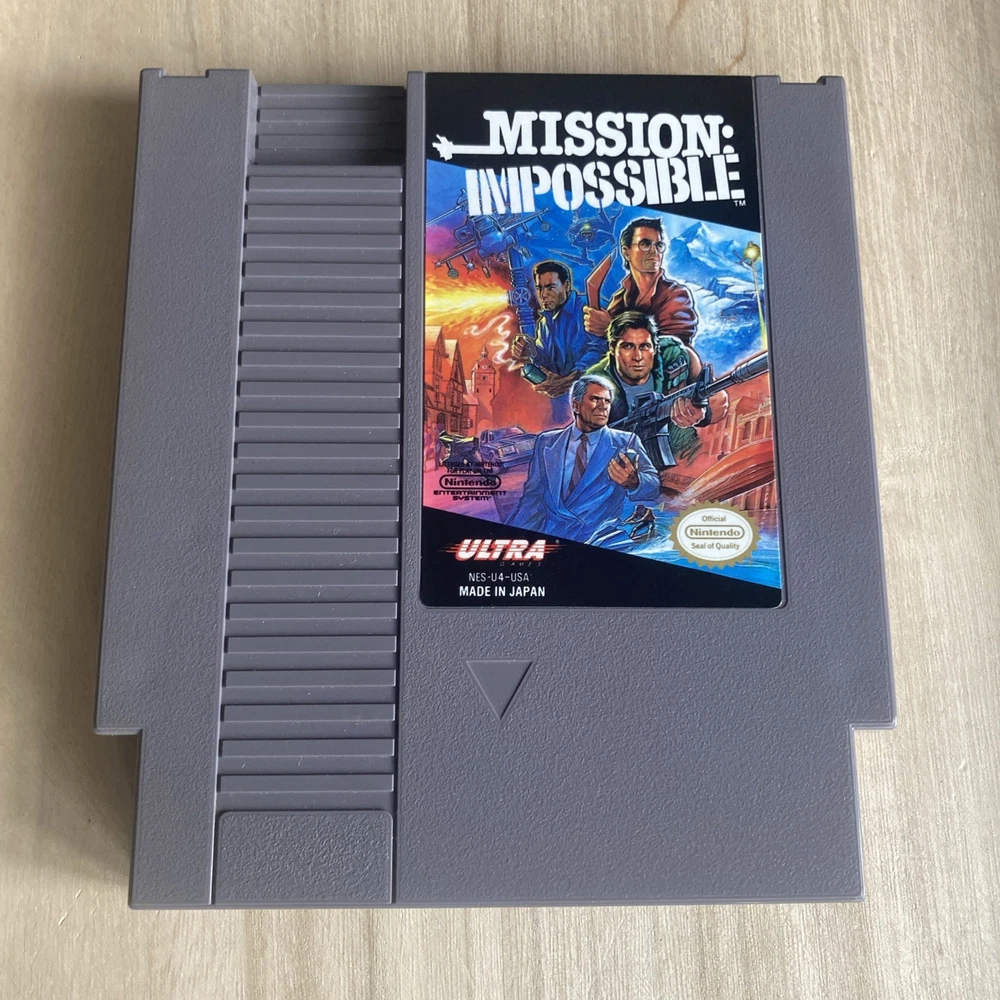 Mission: Impossible for the NES Nintendo Entertainment System is a 1990 action and adventure game published by Ultra. It is a NTSC-U/C (US/Canada) region video game that allows players to assume the role of a secret agent in a series of thrilling missions. With no sleeve included, this classic game provides an immersive experience for fans of vintage video games looking to test their skills in a variety of challenging levels. Pre-owned Includes box, instruction manual, foam block and game cartridge. Some minor cosmetic wear on box and some previous writing. Otherwise in beautiful condition! ( See Pics ) **INCLUDES PLASTIC PROTECTOR *** TESTED **SHIPS FAST**