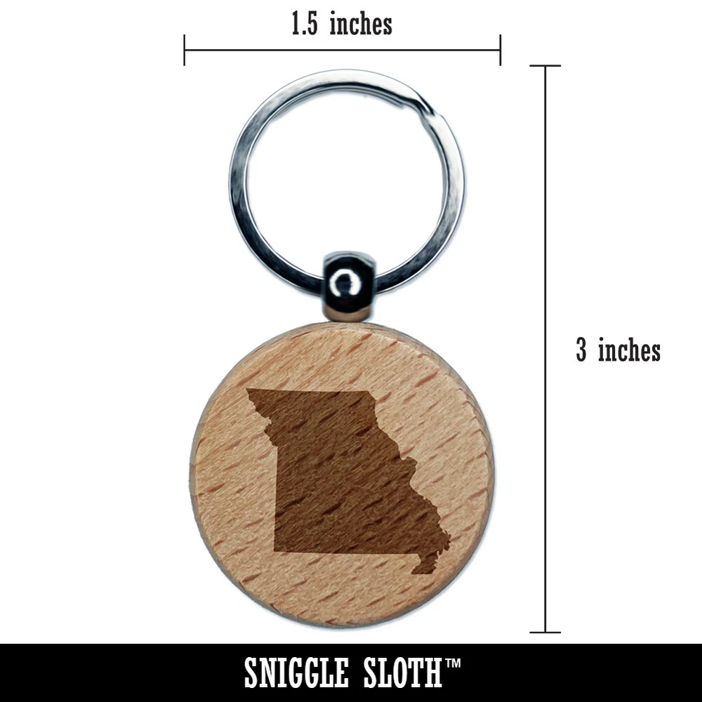 Missouri State Silhouette Engraved Wood Round Keychain Tag Charm