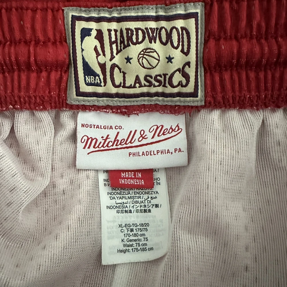 Get ready to show off your love for the Detroit Pistons with these Mitchell & Ness Authentic NBA throwback vintage shorts. These shorts are perfect for any young Pistons fan who wants to represent their team in style. The red color and elastic waist make these shorts both stylish and comfortable to wear.The drawstring closure and adjustable waist ensure a perfect fit for any young athlete, while the lightweight and breathable material make them perfect for summer, fall, and spring. These shorts are ideal for any occasion, whether it's for basketball or just for casual wear. Get your hands on these boys' XL 26" waist, 8.5" inseam (18/20) shorts today and show off your love for the Detroit Pistons in style! Excellent condition. No rips/holes/tears/stains/discoloration/snags. Kept in a smoke/pet free home.
