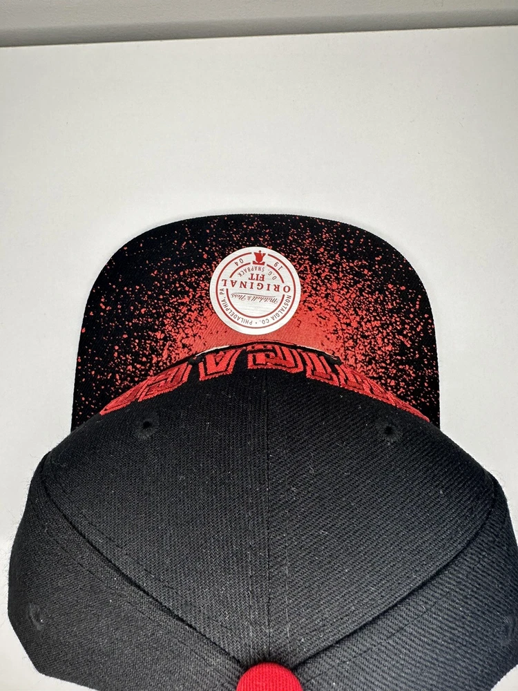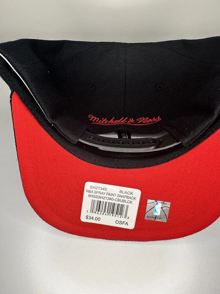 Get ready to show off your love for the Chicago Bulls with this Mitchell & Ness Snapback Hat. Featuring a bold spray paint design, this hat is perfect for any NBA fan. The hat is brand new, ensuring top quality and durability. It is a one-size-fits-all cap, suitable for men, and comes in classic black color. The cap is an official NBA product and features the logo of the Chicago Bulls. The hat is perfect for any basketball fan looking to support their favorite team in style.