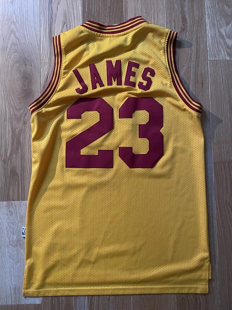 Product:JerseyColor:YellowOfficially Licensed:YesSport:BasketballTeam:Cleveland CavaliersSize:MGender:MenBrand:Mitchell & NessPlayer:LeBron JamesEvent/Tournament:NBALeague:National Basketball Association (NBA)Pre & Post Season:Regular SeasonCountry/Region of Manufacture:Honduras