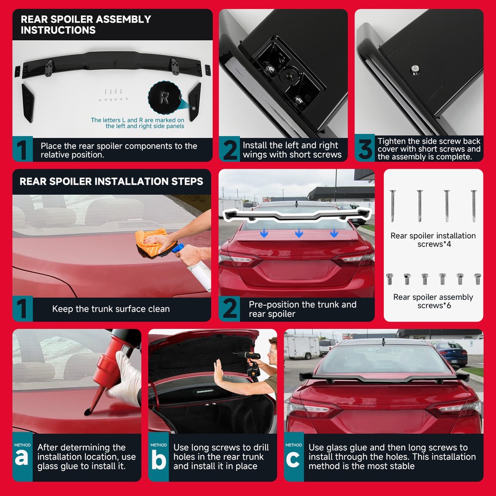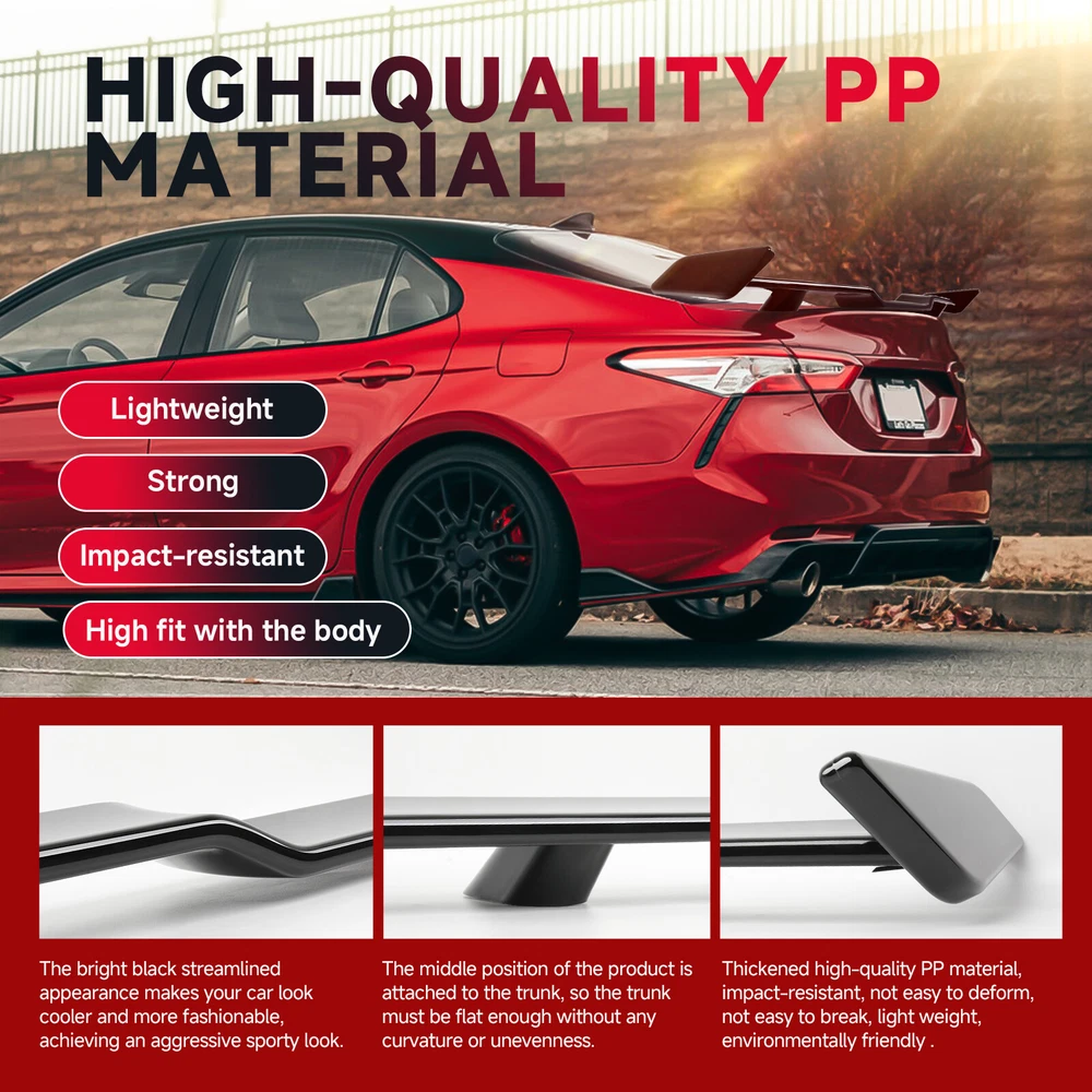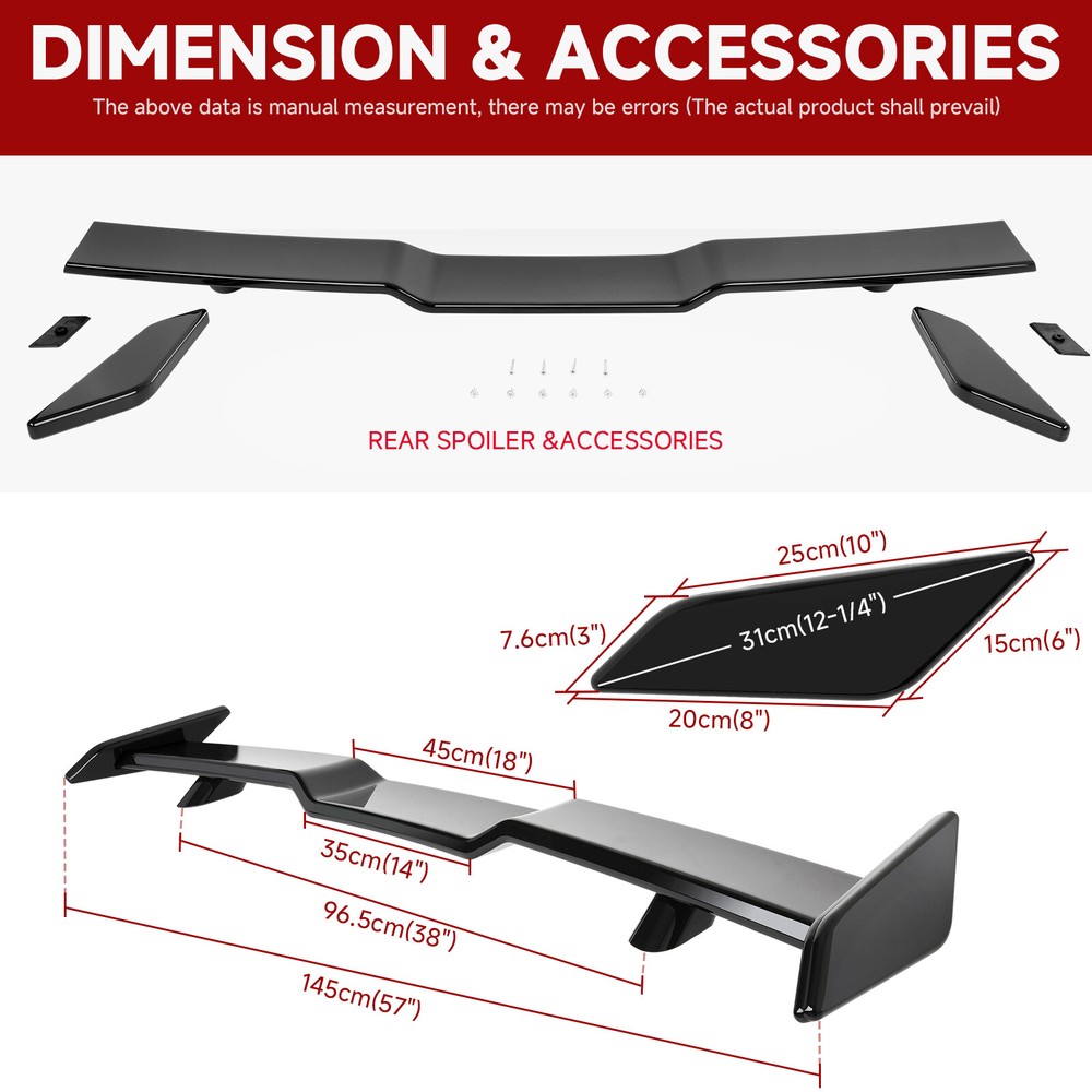 For Mitsubishi Mirage G4 Gloss Black 57" Rear Trunk TRD Style Spoiler Wing Lip Specification Color: Black Finish: Glossy Material: ABS Length: 57 inch / 1450 mm Installation Instructions: Not Included Feature High-Quality Construction: The Dreamizer universal car spoiler wing is crafted from durable ABS plastic, known for its outstanding impact resistance, heat tolerance, and low-temperature resilience. This ensures a precise fit, long-lasting performance, and overall reliability. Aerodynamic Functionality: This rear spoiler effectively minimizes air resistance and enhances downforce at high speeds, which boosts your vehicle's stability. Stylish Design: Available in Gloss Black and Carbon Fiber finish, the spoiler adds a sleek and athletic aesthetic to your car, enhancing its appearance and performance allure. Easy Installation: The spoiler comes with pre-drilled holes and bolt fittings for straightforward installation . It is advisable to use glass adhesive for added security and to drill into the trunk for a firmer bolt-on setup . Professional installation is highly recommended for the best results. Package Included 1 x Rear Trunk Spoiler Wing Set of Screws Kit •We accepted Online Payment payment ONLY •We will ship your order within 24 hours after receiving your verified payment (Excluding Weekends and Public Holidays) •The estimated delivery time is within 3-7 working days(not including the weekend). •United States:3-5 working days(not including the weekend) •If you fail to receive over 7 days, please contact us and we will try our best to help •Return items must not be used or have any sign of abuse or intentional damage. •Buyer is responsible for all return shipping charges. •We reserve the right not to refund S&H when the item has been posted. We are a company run business with more than 10 years experience in whole sale of quality Motorcycle And Car Parts & Accessories Specification Color: Black Finish: Glossy Material: ABS Length: 57 inch / 1450 mm Installation Instructions: Not Included Feature High-Quality Construction: The Dreamizer universal car spoiler wing is crafted from durable ABS plastic, known for its outstanding impact resistance, heat tolerance, and low-temperature resilience. This ensures a precise fit, long-lasting performance, and overall reliability. Aerodynamic Functionality: This rear spoiler effectively minimizes air resistance and enhances downforce at high speeds, which boosts your vehicle's stability. Stylish Design: Available in Gloss Black and Carbon Fiber finish, the spoiler adds a sleek and athletic aesthetic to your car, enhancing its appearance and performance allure. Easy Installation: The spoiler comes with pre-drilled holes and bolt fittings for straightforward installation . It is advisable to use glass adhesive for added security and to drill into the trunk for a firmer bolt-on setup . Professional installation is highly recommended for the best results. Package Included 1 x Rear Trunk Spoiler Wing Set of Screws Kit PAYMENT •We accepted Online Payment payment ONLY SHIPPING •We will ship your order within 24 hours after receiving your verified payment (Excluding Weekends and Public Holidays) •The estimated delivery time is within 3-7 working days(not including the weekend). •United States:3-5 working days(not including the weekend) •If you fail to receive over 7 days, please contact us and we will try our best to help Terms of Sale •Return items must not be used or have any sign of abuse or intentional damage. •Buyer is responsible for all return shipping charges. •We reserve the right not to refund S&H when the item has been posted. ABOUT US We are a company run business with more than 10 years experience in whole sale of quality Motorcycle And Car Parts & Accessories On Mar 31, 2025 at 17:45:32 PDT, seller added the following information: