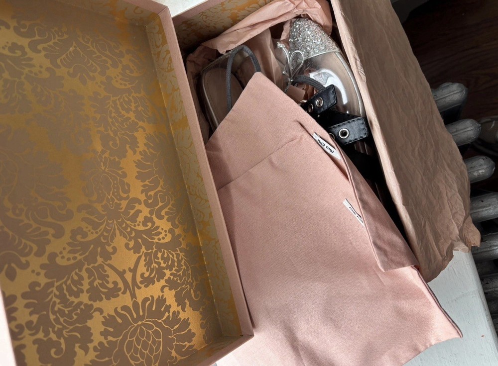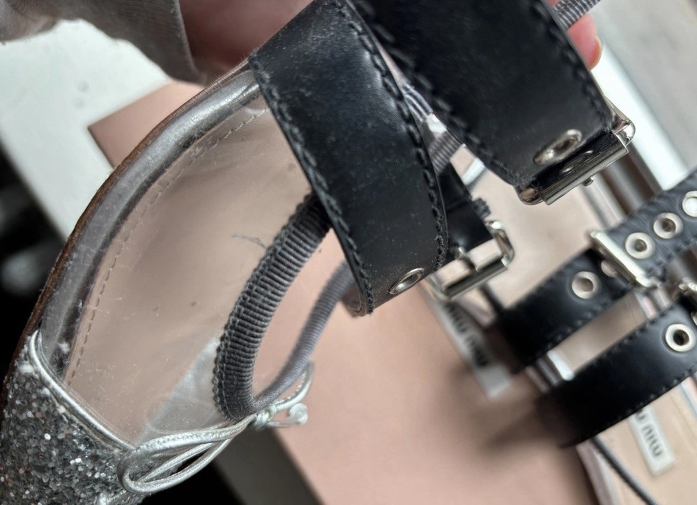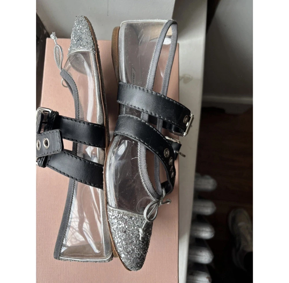 Miu Miu Glitter Toe Ballet Flats with Double Straps. Used with box and dust bags. Size EU38.5
