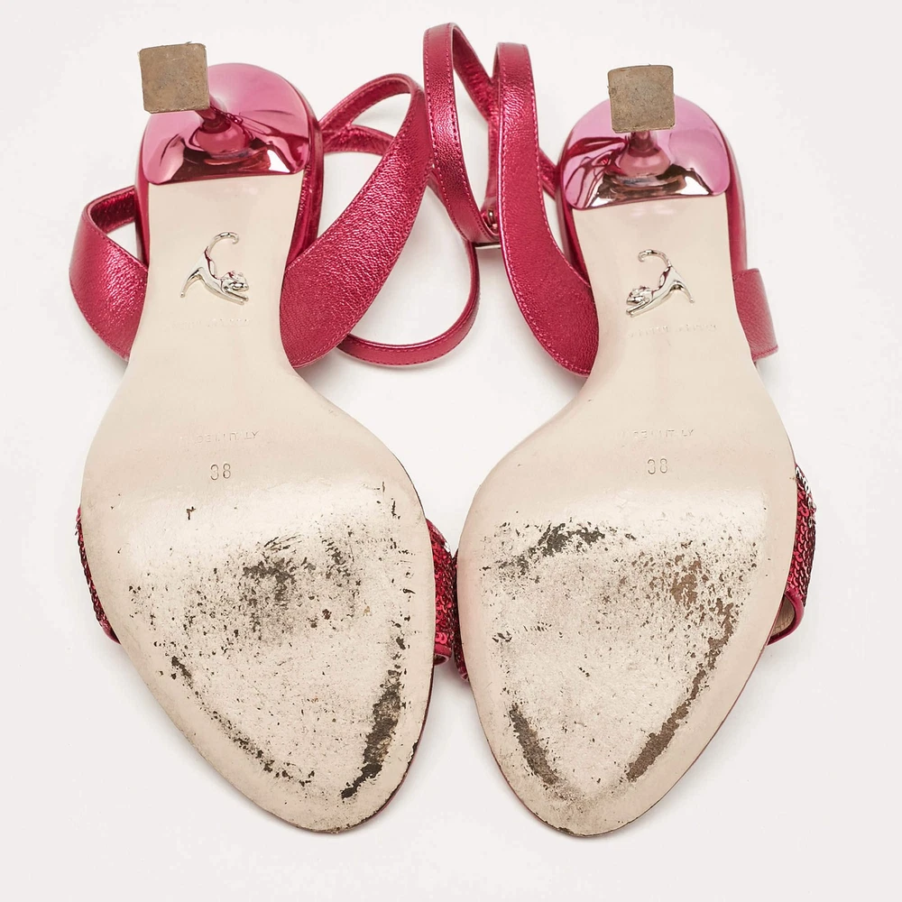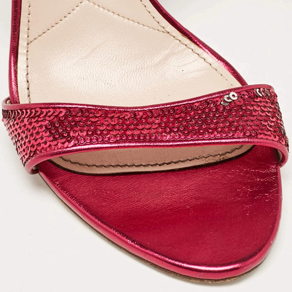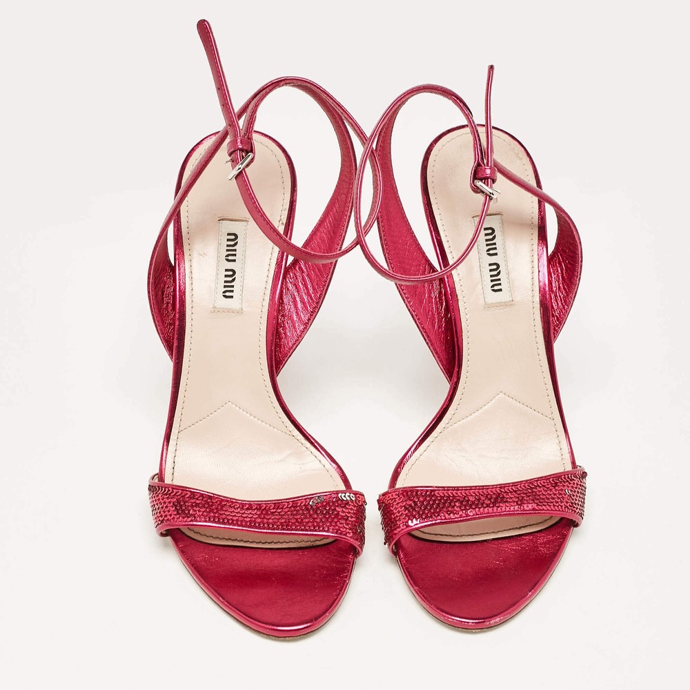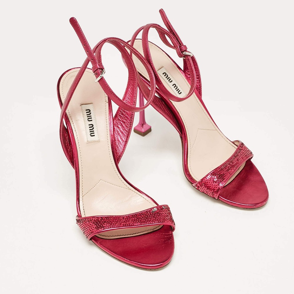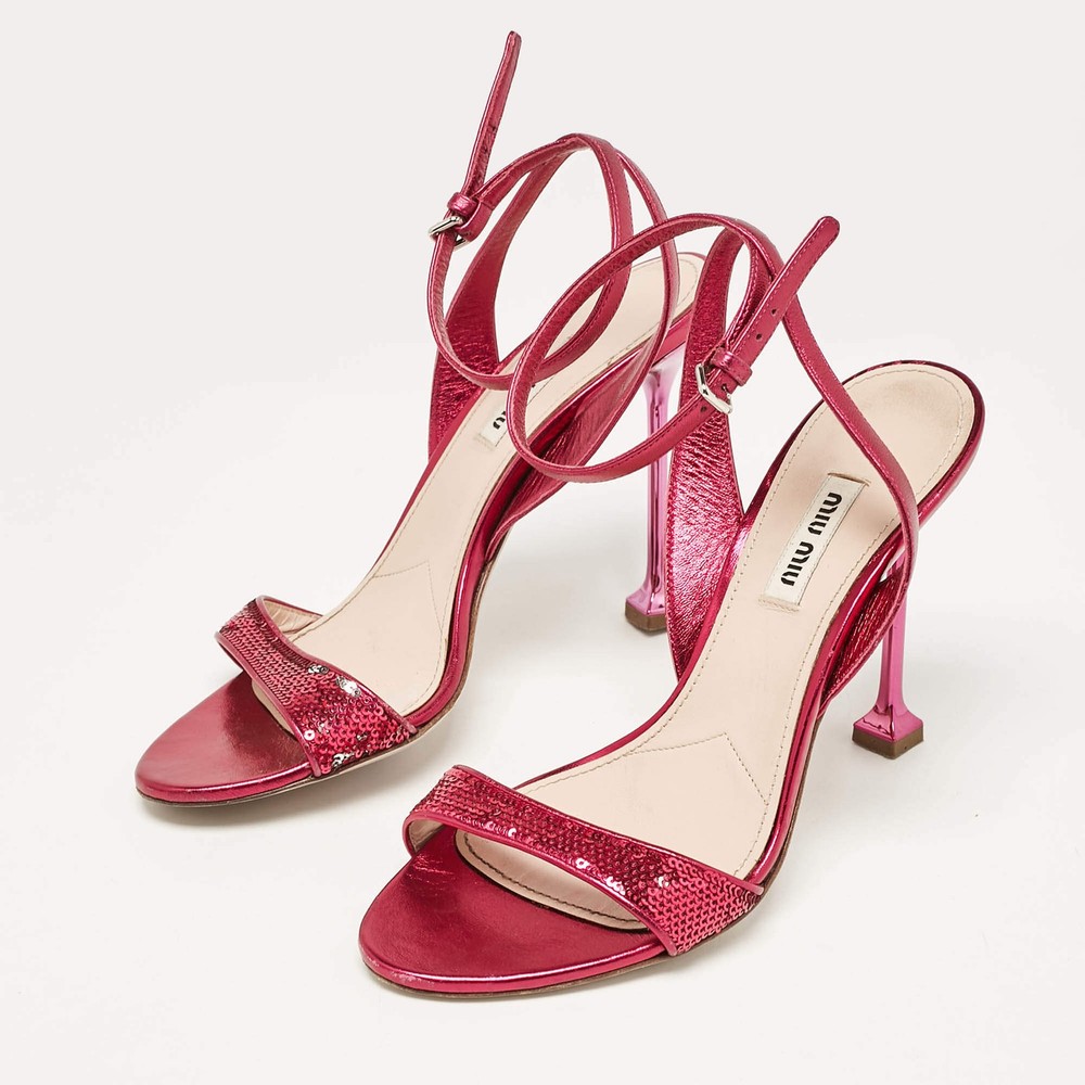 Our eBay Store About Us Contact Us Add to Favorite Sellers Miu Miu Metallic Rose Leather Ankle Strap Sandals Size 38 Feminine and chic, these Miu Miu sandals are crafted from metallic rose leather with an elegant ankle strap. Their subtle shimmer makes them ideal for adding a touch of glamour to any ensemble. Product Details Brand Miu Miu Color Metallic Includes The Luxury Closet Packaging Outsole Length 20 cm Outsole Width 8 cm Size 38 Certified by The Luxury Closet This item has gone through a detailed authentication process overseen by our experts. We offer a lifetime guarantee of authenticity on all our items. How We Check The in-house team of experts at The Luxury Closet is highly trained to verify the authenticity and the condition of the luxury products. They ensure that only 100% authentic items are put on sale.The evaluation process is unique with its own mix of assessment criteria and differs according to the category. Each item is evaluated based on the following combination of hallmarks, hardware, stitching, symmetry, material, craftsmanship, stamping, codes, hologram stickers, and packaging. Our authenticators also check if the items have been modified or amended (e.g., aftermarket diamonds, replaced batteries, repaired bags, etc.) International Buyers Import duties, taxes and charges are not included in the item price. These charges are the buyers responsibility. Please check with your country’s customs office to determine what these additional cost will be prior to buying.
