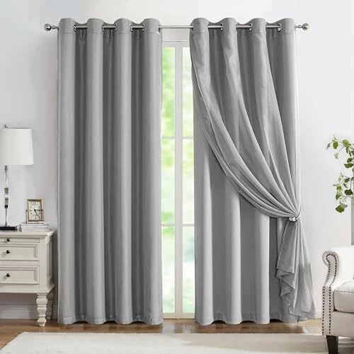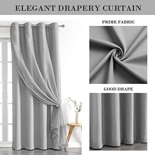 30 Days Return Policy Fast Delivery Trusted seller Mix and Match Curtain Set Grey Total Blackout Curtains 84 Inches Long with Solid Voile Sheer Curtains for Bedroom and Living Room,Grommet Top,52" W x 84" L Product Description Mix & Match 4 Pieces Curtain Set: Each includes 2 pieces of solid black blackout curtains and 2 pieces of grey voile sheers. All Can be separately used. These can be used single layer or overlay to meet the different purposes.52" w x 84" /panel, 104" w x 84" /pair, 1.6 inches inner width Rings fit any standard and decorative curtain rod Elegant Look: Modern solid grey sheer voile curtain drapes paired with luxury & soft-touch grey blackout thermally insulated panels perfect decorate your home with a modern character without obscuring the beautiful looks in window fashion Excellent Functions: Sheer curtains allow natural light to flow through the room with a sense of airiness. Single-Layer thermal room darkening panels will block out unwanted light and isolate outside peep. Perfect for bedroom, living room, baby/girls/kids room, apartment office, hotel, study and etc Multiple Combinations: Match it as you like. Solid black voile sheer blackout window treatments using layered design can provide a variety of modeling options for any window. Multiple creative hanging methods will create surprises while bringing you a good mood in real-time Instruction for Cares: Recommended to clean separately. Voile Sheer Curtains- Machine washes with a mesh bag on a gentle cycle. Lay it flat or hang it out in the sun to dry. Don’t bleach. Tumble dry low if necessary. Shipping Returns Payment Shipping Shipping is FREE to all addresses other than APO/PO boxes in the lower 48 states. All our stock ships from US-based warehouses. Shipped via USPS or UPS (depending on location and package weight) Unless stated otherwise, all orders will ship within 24-72 hours of your payment being processed. Check our feedback to see the great reviews of FAST shipping we offer. Returns As our valued customer, we will do our best to make sure the product you receive arrives to you on time and as expected. If you are not satisfied with your purchase, please contact us within 30 days of receiving your order to process a return. Payment We currently accept payment via eBay managed payments only. Once payment is cleared, we will dispatch your shipment within 1-3 business days. Please refer to the "Shipping" tab for more information regarding shipping speed to your destination.