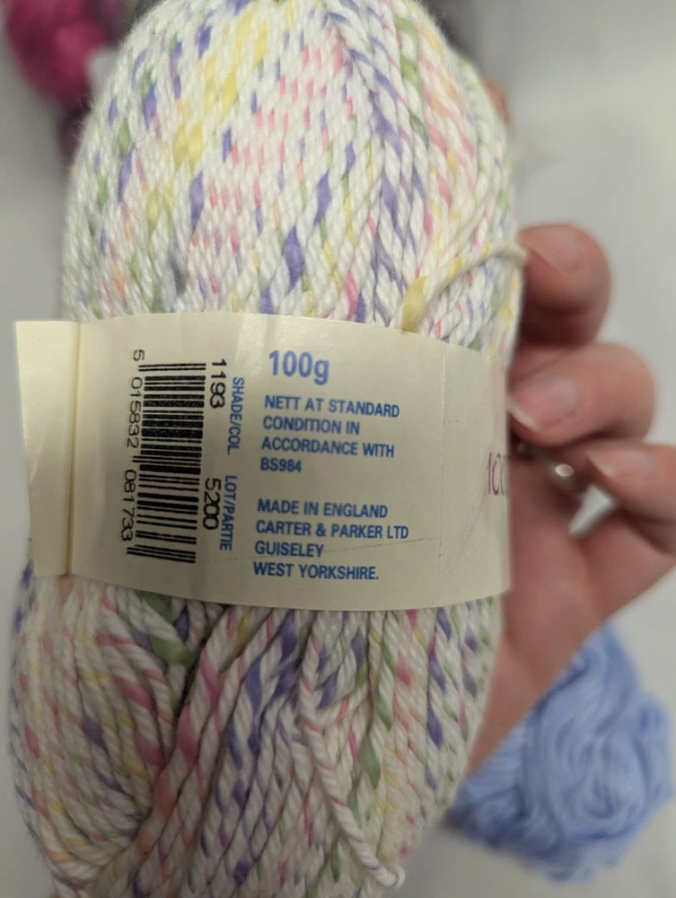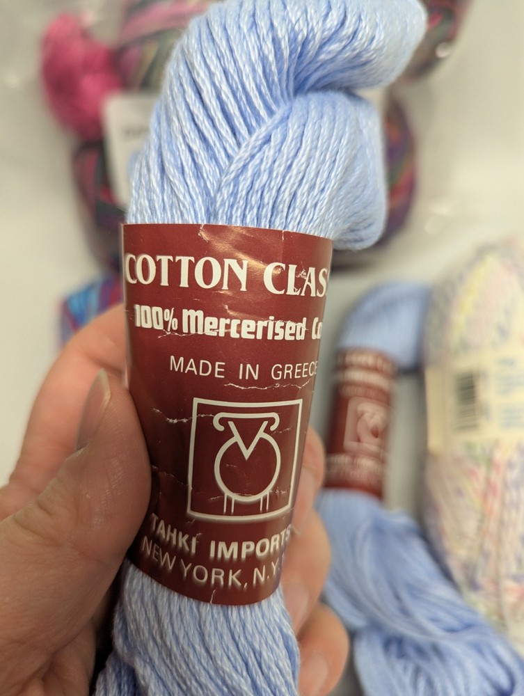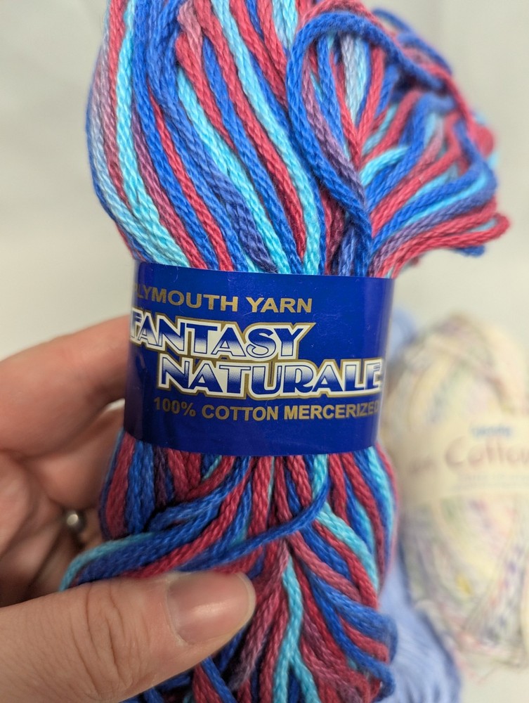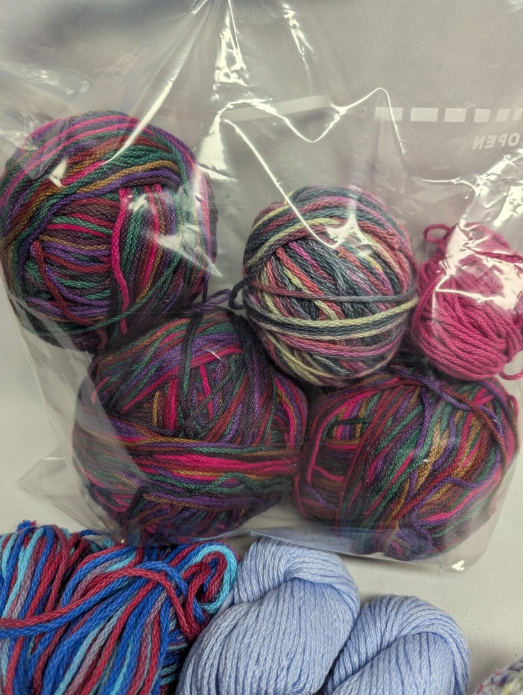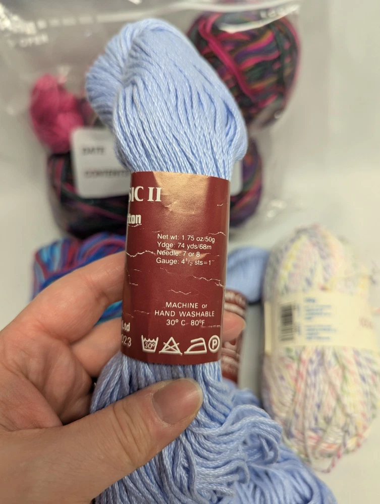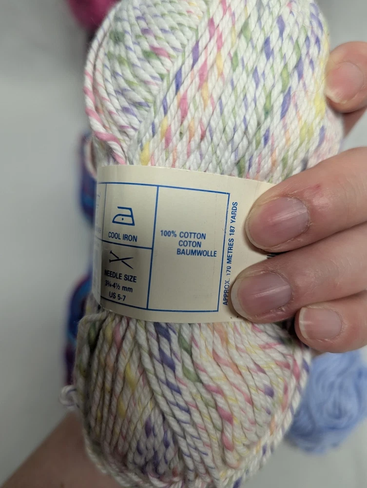 The product is a mixed lot of cotton yarn, consisting of 7 full and 2 partial skeins. The yarn is multi-color and suitable for crafts. Crafters can use this assortment of cotton yarn for various projects, such as knitting or crocheting clothing, accessories, or home decor items. With a variety of colors available, crafters have the flexibility to choose the perfect color(s) for their projects.