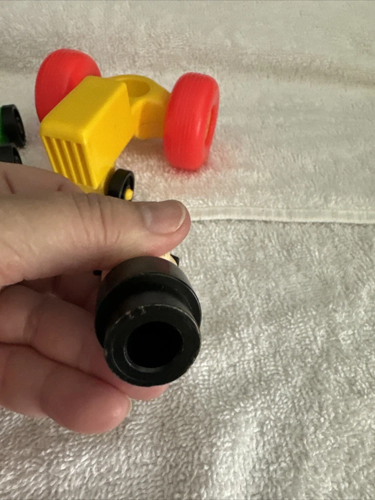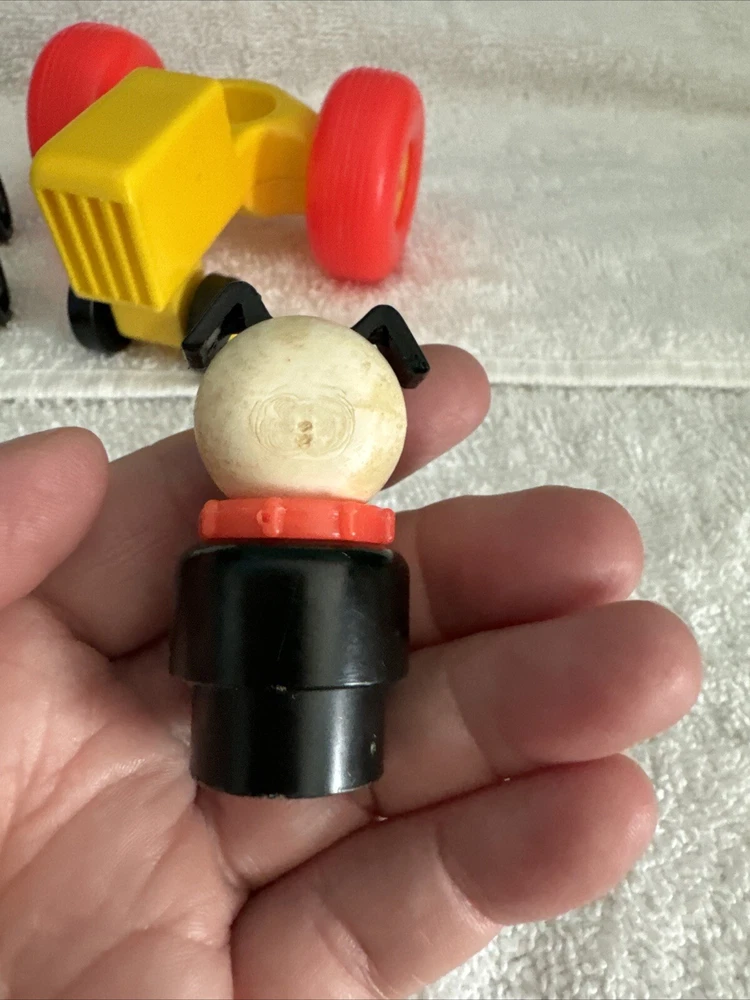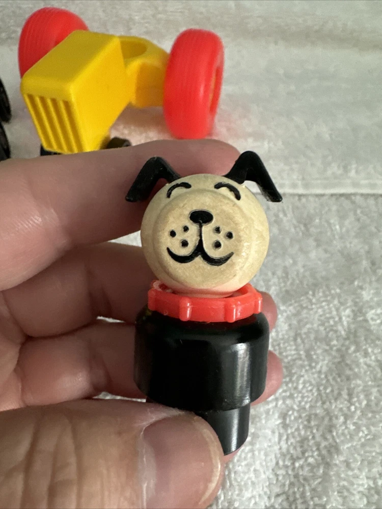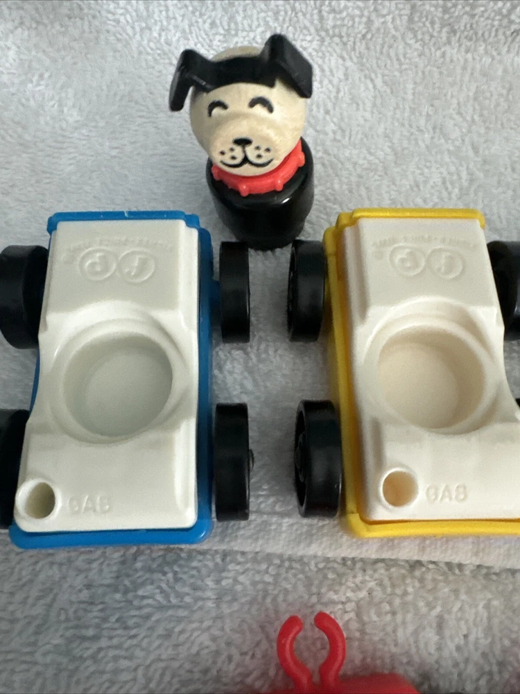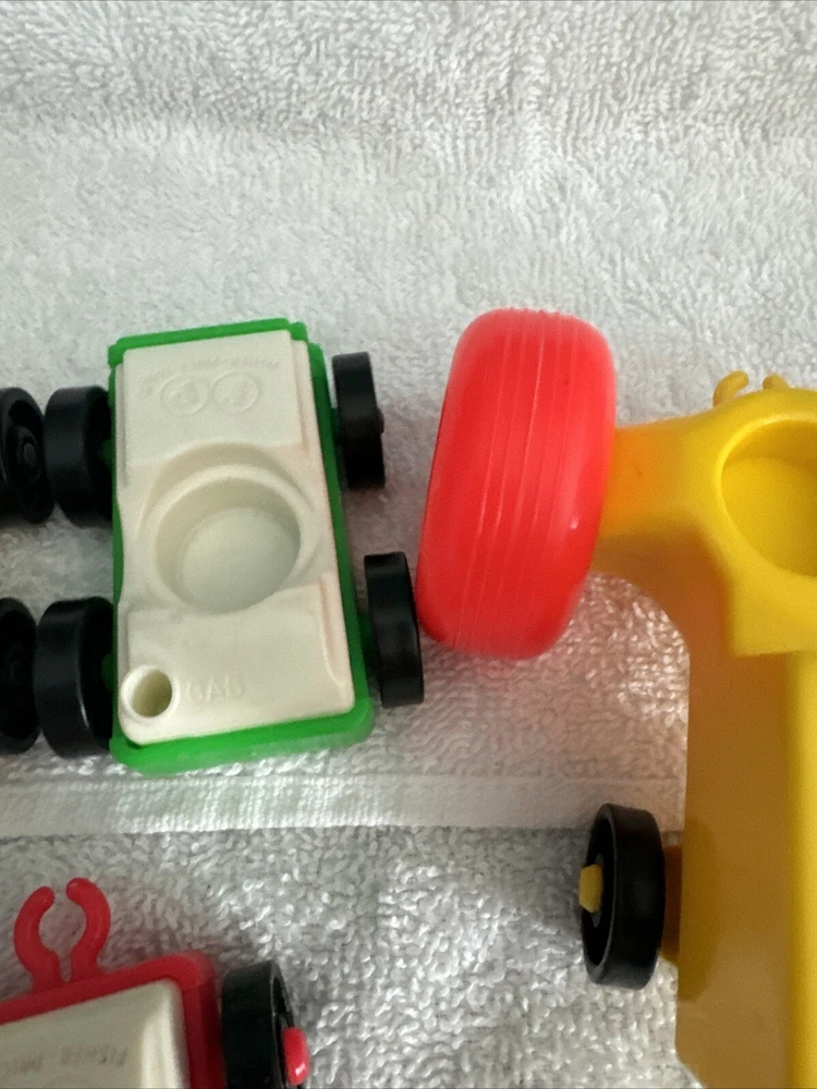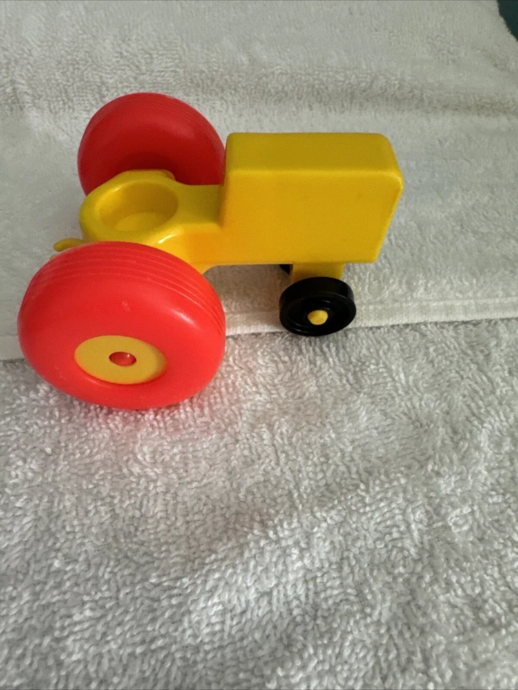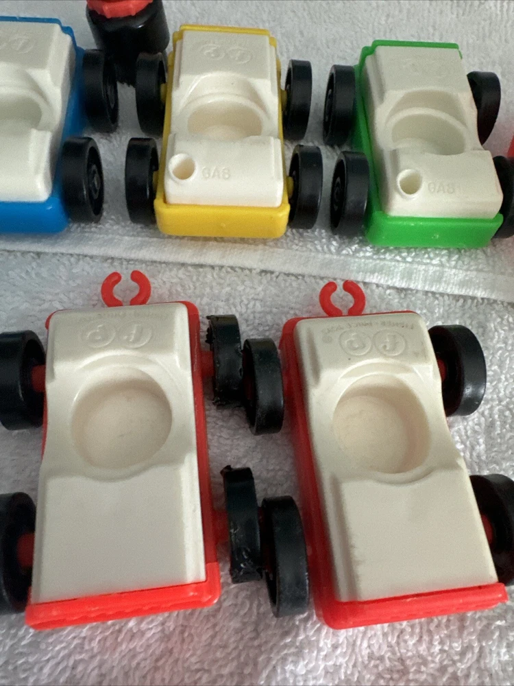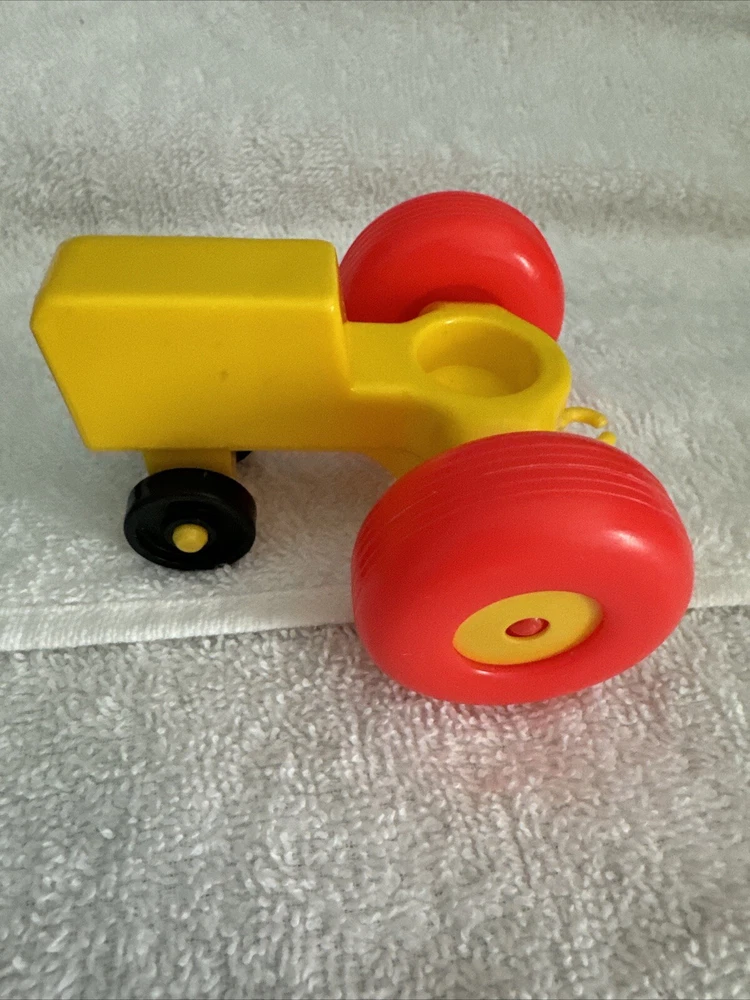 One blue car One yellow car One green car TWO red cars One Tractor One dog with a red collar All items are plastic. Please take a good look at pictures and message me with any questions. I gladly combine shipping with multiple orders and will do what I can for any request. Thank you for looking.