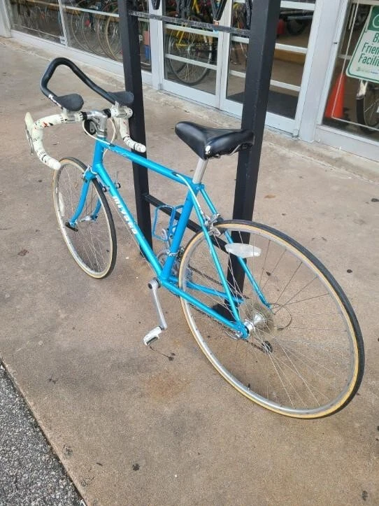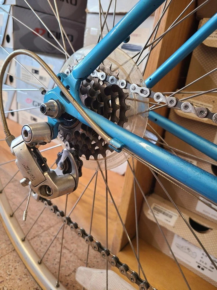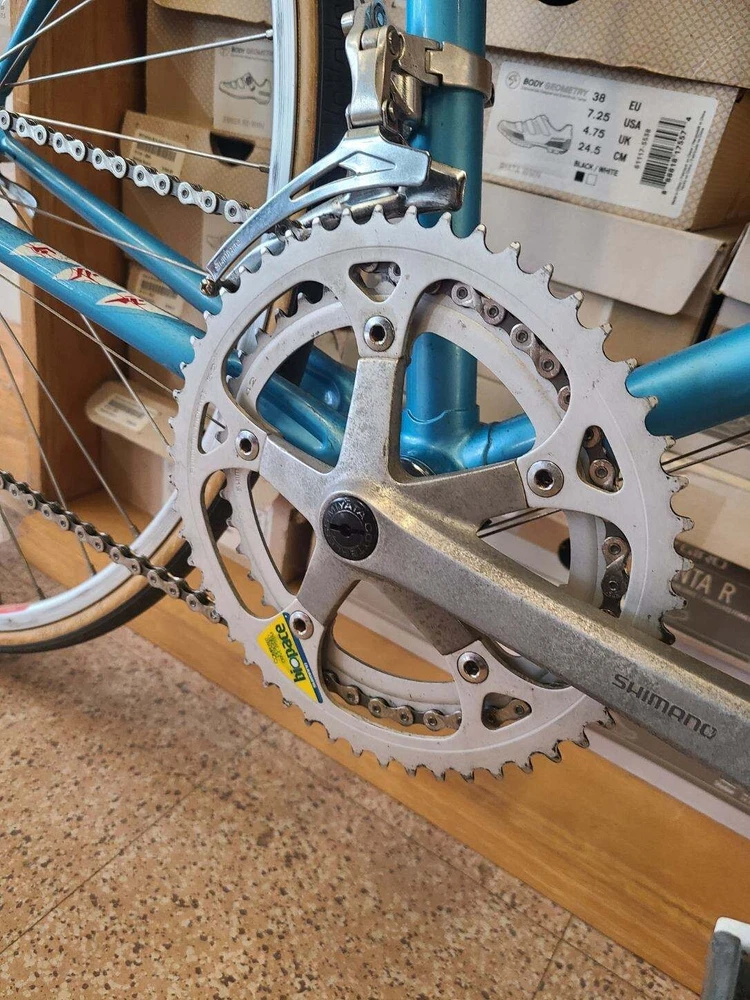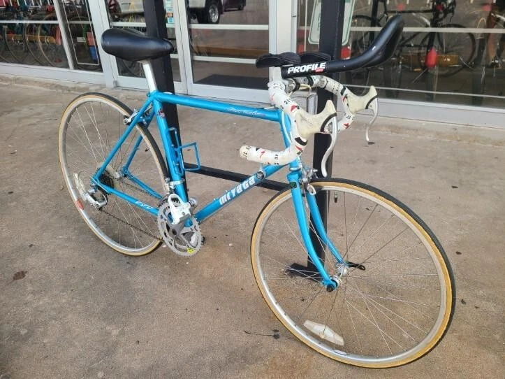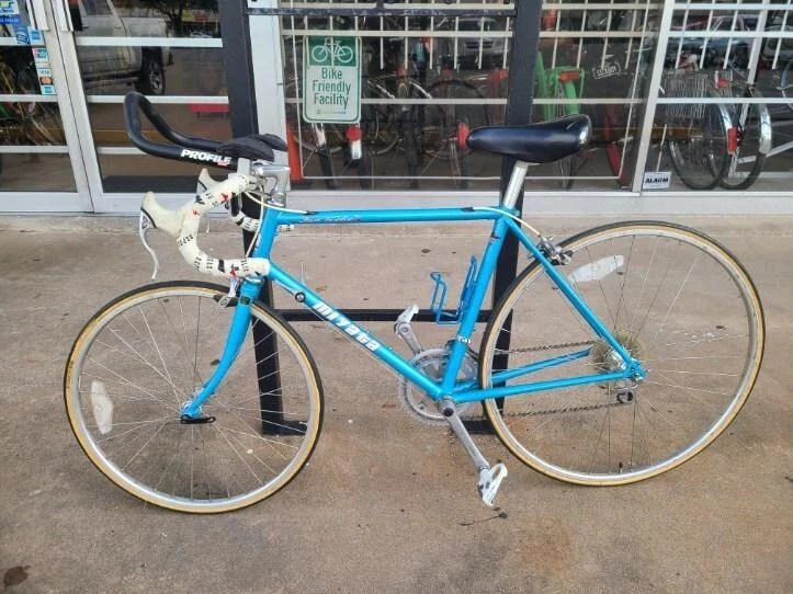 This Miyata 512 road bike is a great choice for any cycling enthusiast. With a frame size of 46 cm, it's perfect for riders looking for a comfortable and stable ride. The bike features a Biopace 24 front and 700 rear, providing excellent handling and performance. The blue color adds a touch of style to the design.The bike is made from high-quality Chromoly material, ensuring durability and longevity. The Aerobar handlebar type and rear suspension type make this bike perfect for road riding. Whether you're a seasoned cyclist or just starting out, the Miyata 512 is a great choice for anyone looking for a high-performance road bike. Made in Japan. Excellent condition