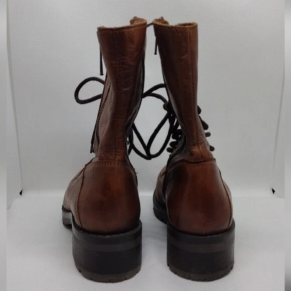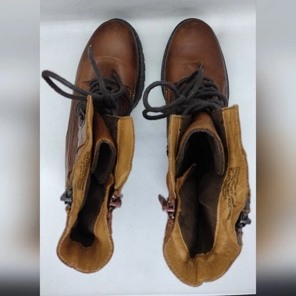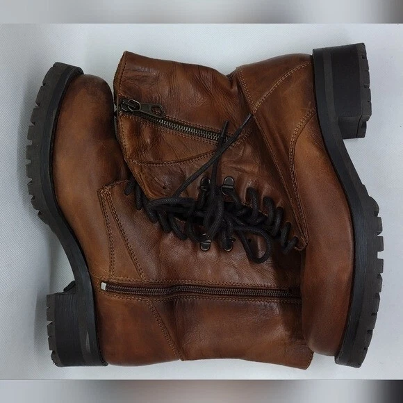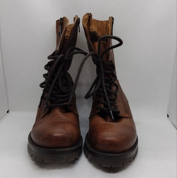 Features Brown Lace up Side zippers Combat boots Military Leather Boho Retro 90s Y2K Streetwear Great Pre-Loved Condition SIZE 39 Measurements Pit to Pit: Length: Waist: Rise: Inseam: Length: Please check to be sure of fit Smoke Free Pets Free Please feel free to contact me for any questions or offer Bundle Discounts Offered Fast Shipping *41226-5510-24*